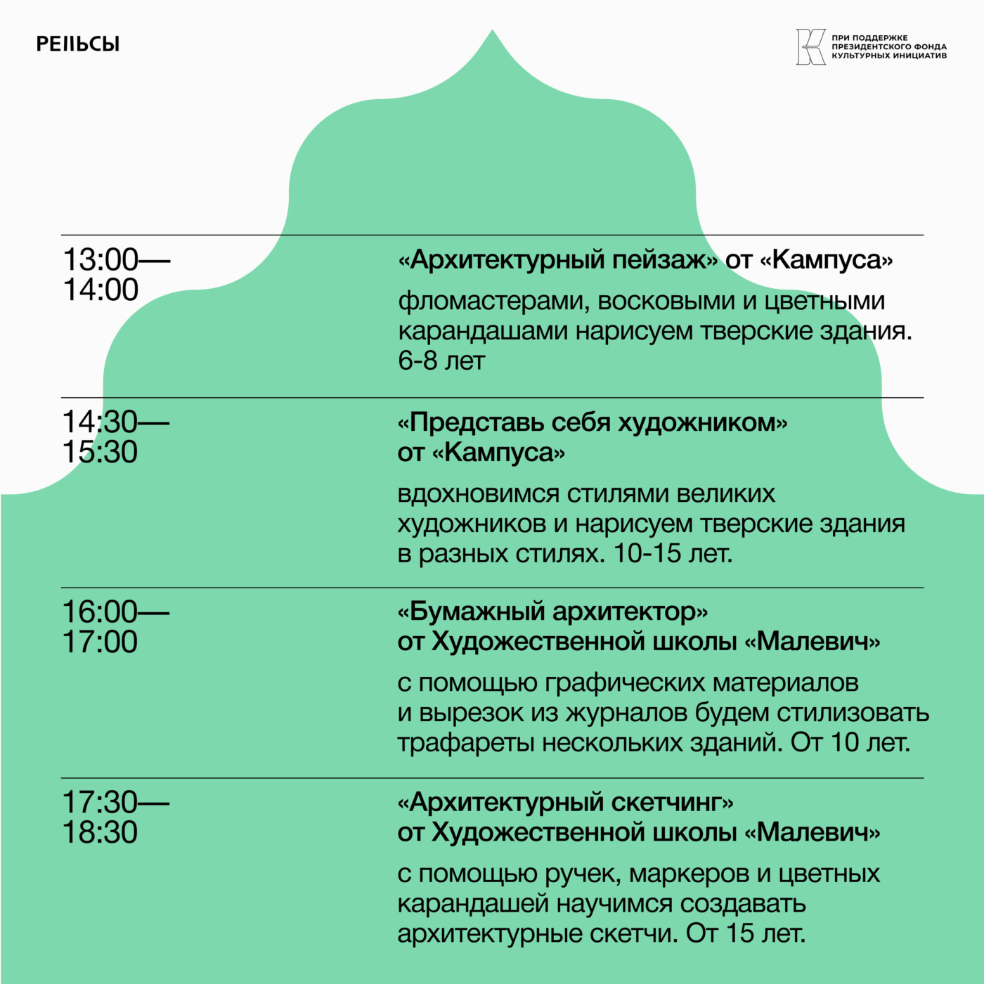 Насыщенная творческая программа включает мастер-классы для детей и взрослых: архитектурный скетчинг, создание фоторамки-наличника из дерева, стилизация трафаретов зданий и многое другое.