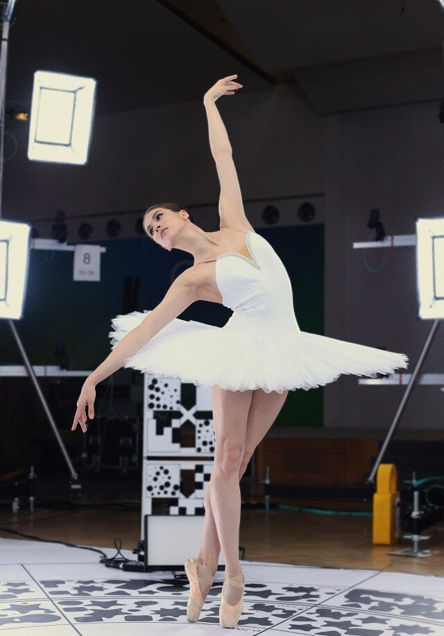 Танец в дополненной реальности исполнила артистка балетной труппы Большого театра Анита Пудикова, которая стала широко известна благодаря участию в создании популярной фантастической компьютерной игры.