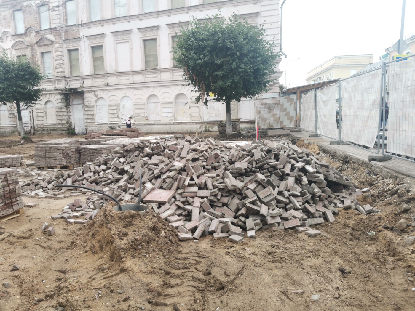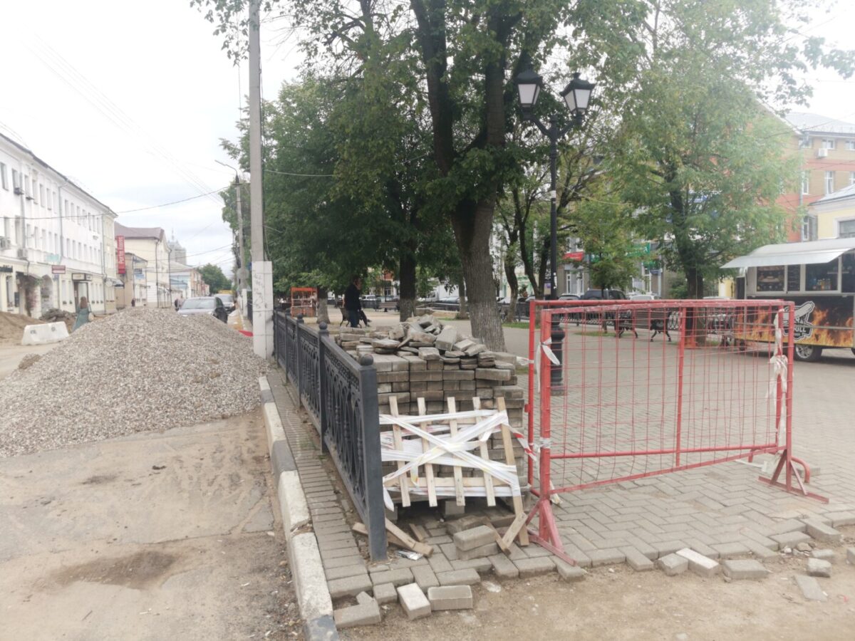 Старую плитку с тверского Арбата сняли в конце апреля. Затем улицу огородили, оставив два узких прохода с двух сторон. Интересно, что через некоторое время активность подрядчика затихла. В июле поползли слухи, что с реализацией проекта что-то не так и администрация Твери может расторгнуть договор. В пресс-службе администрации «Караван» заверили, что у горожан нет поводов для беспокойства.