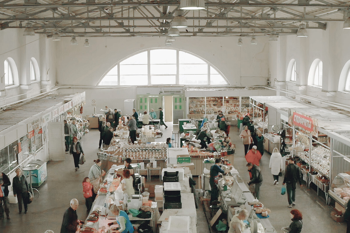 На рынке представлены фермерские молочные и мясные продукты, рыба свежая, копченая, соленая, сыры, масло, колбасы, сало соленое, а также большой ассортимент зелени, свежих фруктов и овощей, различных специй и орехов. Любители корейских салатов также найдут продукцию на свой вкус.