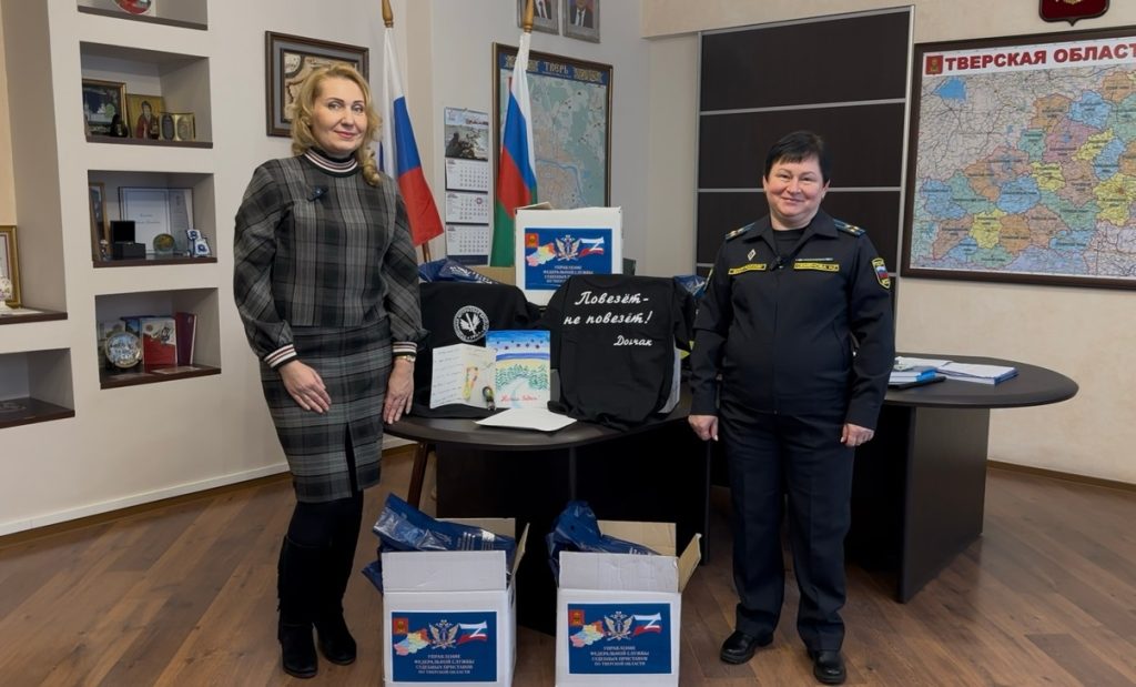 Руководитель управления – главный судебный пристав Тверской области, полковник внутренней службы Надежда Геннадьевна Семенова лично передала подарки супруге одного из бойцов, находящихся в зоне специальной военной операции.