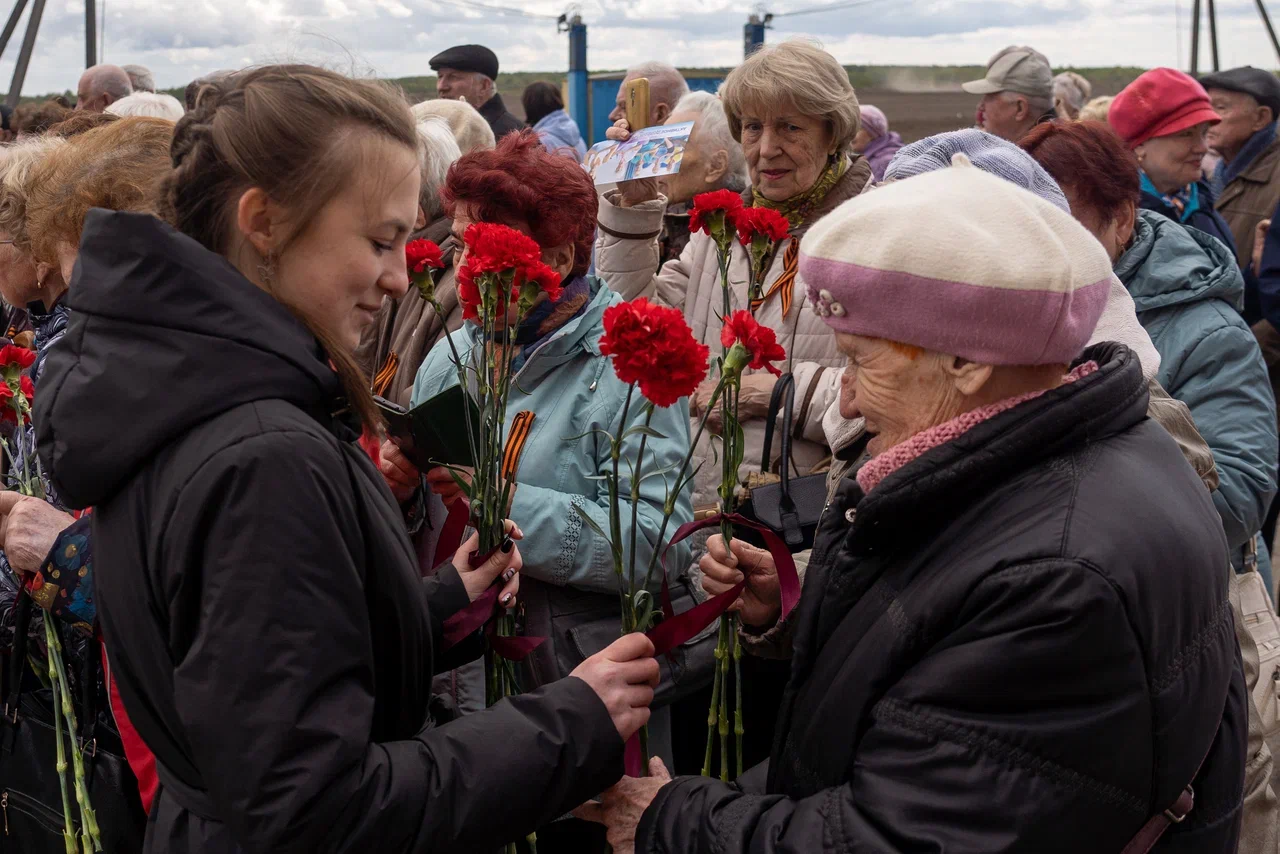 Автобусы с ветеранами, а на праздник было приглашено более 100 человек, под игру муниципального духового оркестра встречали генеральный директор ЗАО «Калининское» Александр Оводков, сотрудники предприятия, их дети и внуки. Они вручали гостям букеты из алых гвоздик.