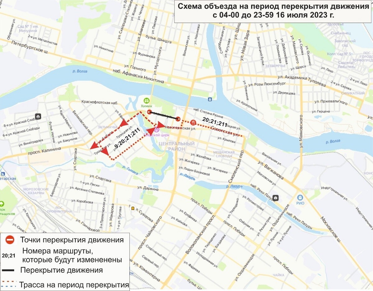 16 июля Тверь отметит День города. В связи с проведением праздничных мероприятий в центре столицы Верхневолжья перекроют ряд улиц. Это не может не отразиться на схеме движения автобусов «Транспорта Верхневолжья».