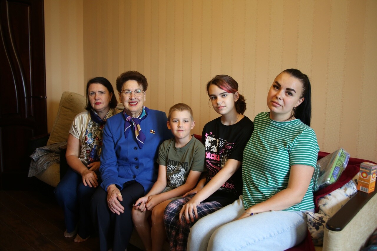 В гости к беженцам пришла депутат Тверской городской Думы Екатерина Глебова. Она передала многодетной семье постельное белье, полотенца, одежду, бытовую химию, предметы гигиены, лекарства и сладости.