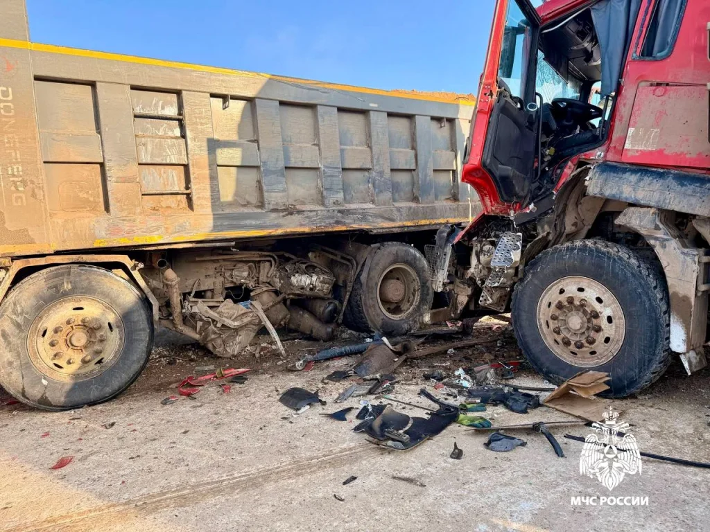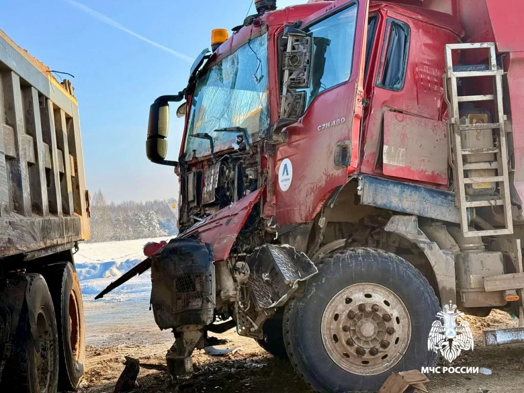 Произошло столкновение двух большегрузов. В аварии пострадал один из водителей, он был доставлен в больницу.