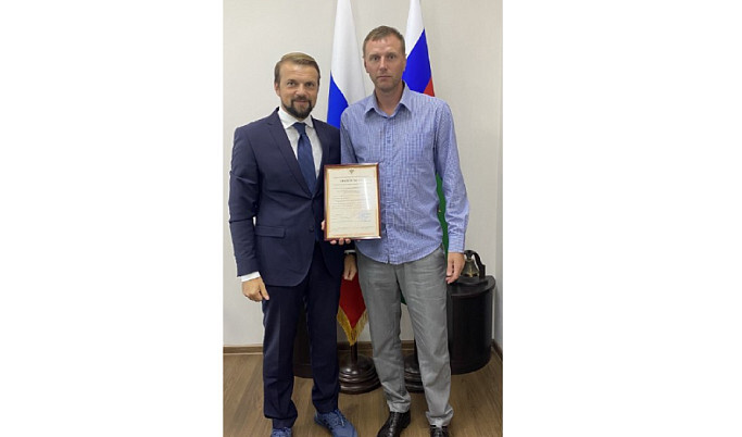Председателю Федерации гандбола Тверской области Михаилу Большакову вручили свидетельство о регистрации спортивной организации.