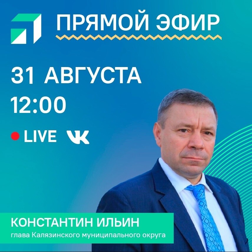 Центр управления регионом в Тверской области проведёт прямой эфир с главой Калязинского округа Константином Ильиным 31 августа в 12:00. Организаторы трансляции предлагают задавать вопросы главе округа.