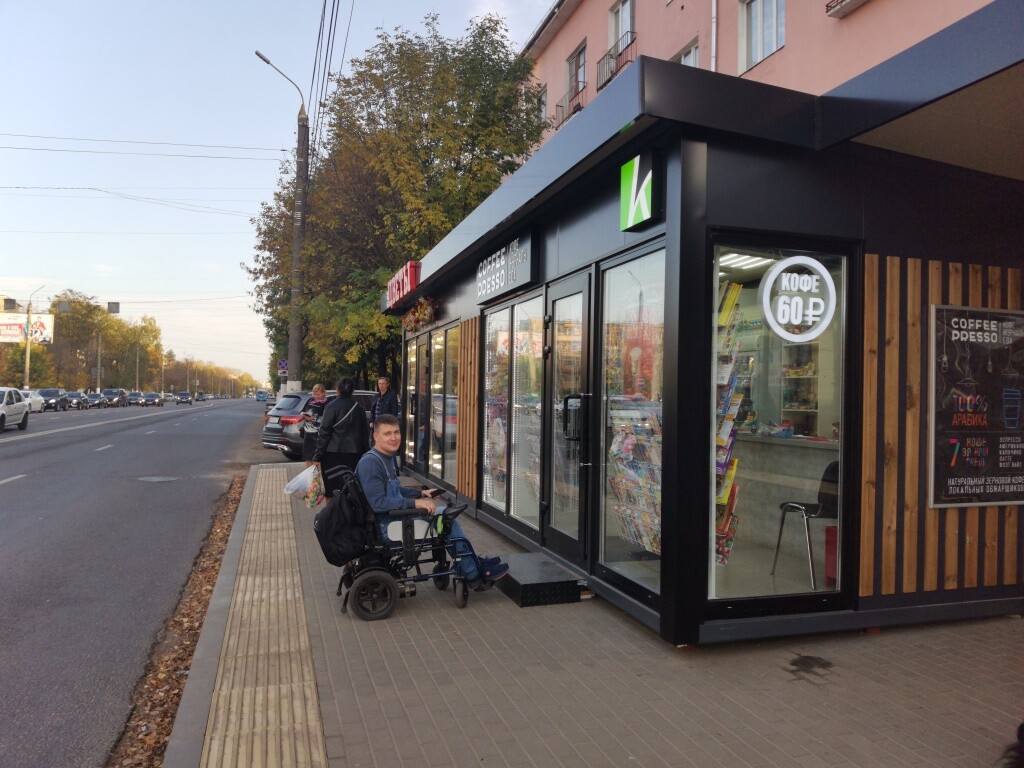 Андрей Увиков рассказал, что «Кристаллу» и «Эксперту» пока не удалось наладить контакт с департаментом экономического развития администрации города Твери: «9 октября я, инвалид-колясочник, в холод и под дождем приехал на встречу, а представители департамента нет. На ней присутствовали уполномоченная по правам человека Надежда Егорова, Анастасия Савина, представитель Общественной палаты Тверской области Ольга Кириченко, депутат ТГД и директор МУП «ТОК» Сергей Мамонов, который отказался признать факт нарушения на рынке на бульваре Ногина, который подведомственен его организации». Именно это ведомство отвечает за установку остановочных павильонов в областной столице. На перекрестке проспекта Победы и Волоколамского проспекта установили новый остановочный комплекс с магазинчиками и удобным пространством для ожидания автобусов. Выглядит комплекс современно, но есть одно но. Попасть мобильным группам населения в магазинчики не получится: путь преграждает большая ступенька.