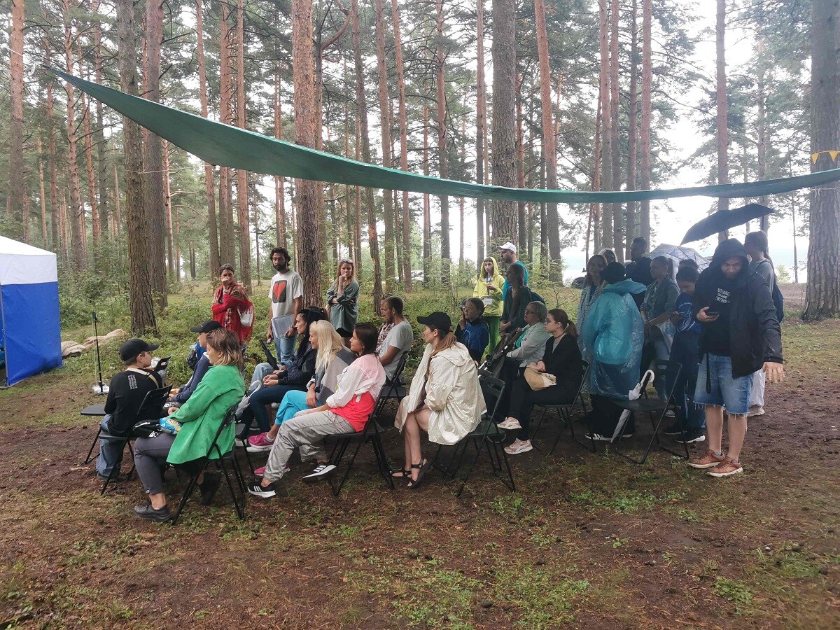 Прохладная погода и дождь спугнули многих отдыхающих. Гуляя вдоль карьеров, я любовался его пустующими песчаными пляжами, на которых еще неделю назад яблоку негде было упасть. Вдруг вдали я услышал музыку и оживленные голоса. На берегу расположился целый экогородок. В субботний день сюда приехали сотни жителей и гостей региона, желающие поучаствовать в первом музыкальном экофестивале.