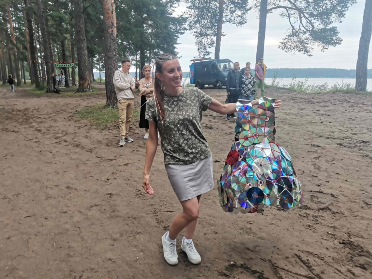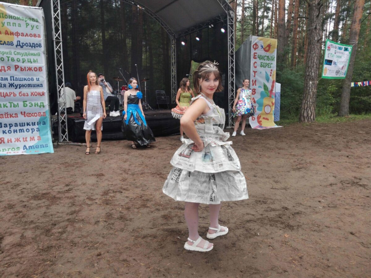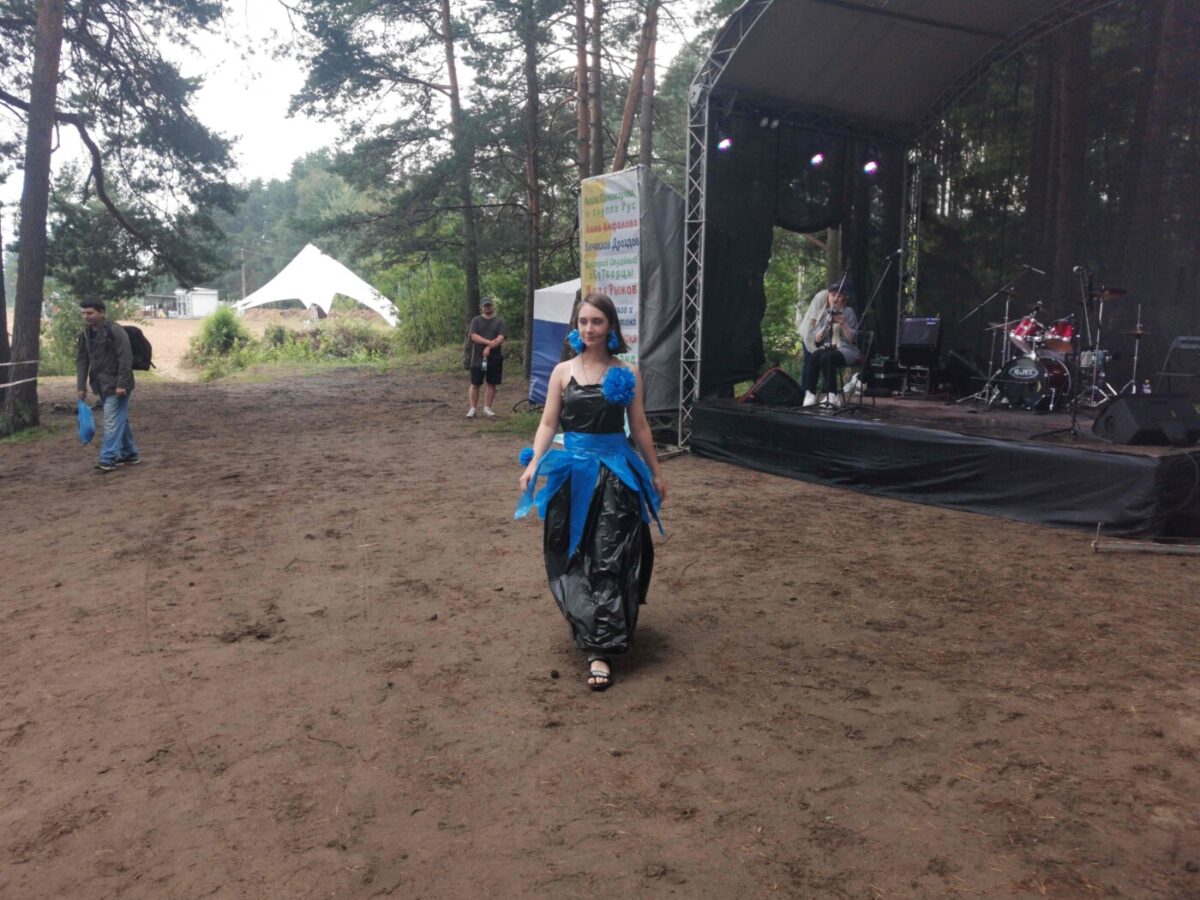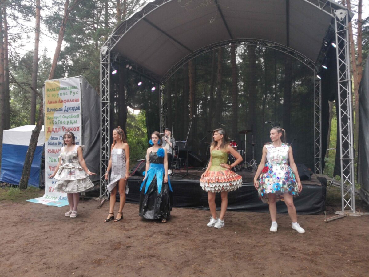 Состоялся в этот день показ модной одежды, созданной из вторичных материалов. Костюмы сотворили Ольга Дунаева и Мария Ширяева. Перед зрителями блистали девушки в нарядах, созданных из газет, мусорных пакетов и пластиковых карточек и CD-дисков. Выглядели модели очень эффектно и охотно фотографировались с гостями фестиваля. Отметим, что эти костюмы потом были сданы во вторичную переработку.