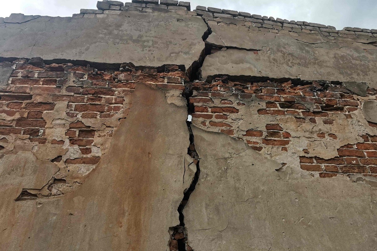 Стена постепенно разрушается уже не первый год. Для ее укрепления БТИ установило в качестве подпорки два бетонных столба. К маю 2023 года стена пришла в совсем плачевное состояние, из нее начали сыпаться кирпичи. Администрация Твери, являясь собственником, не предприняла никаких действий для ее ремонта.