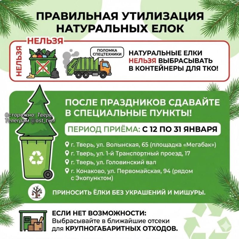 С 12 января в Твери и Конакове будут установлены специальные бункеры для утилизации натуральных новогодних деревьев.