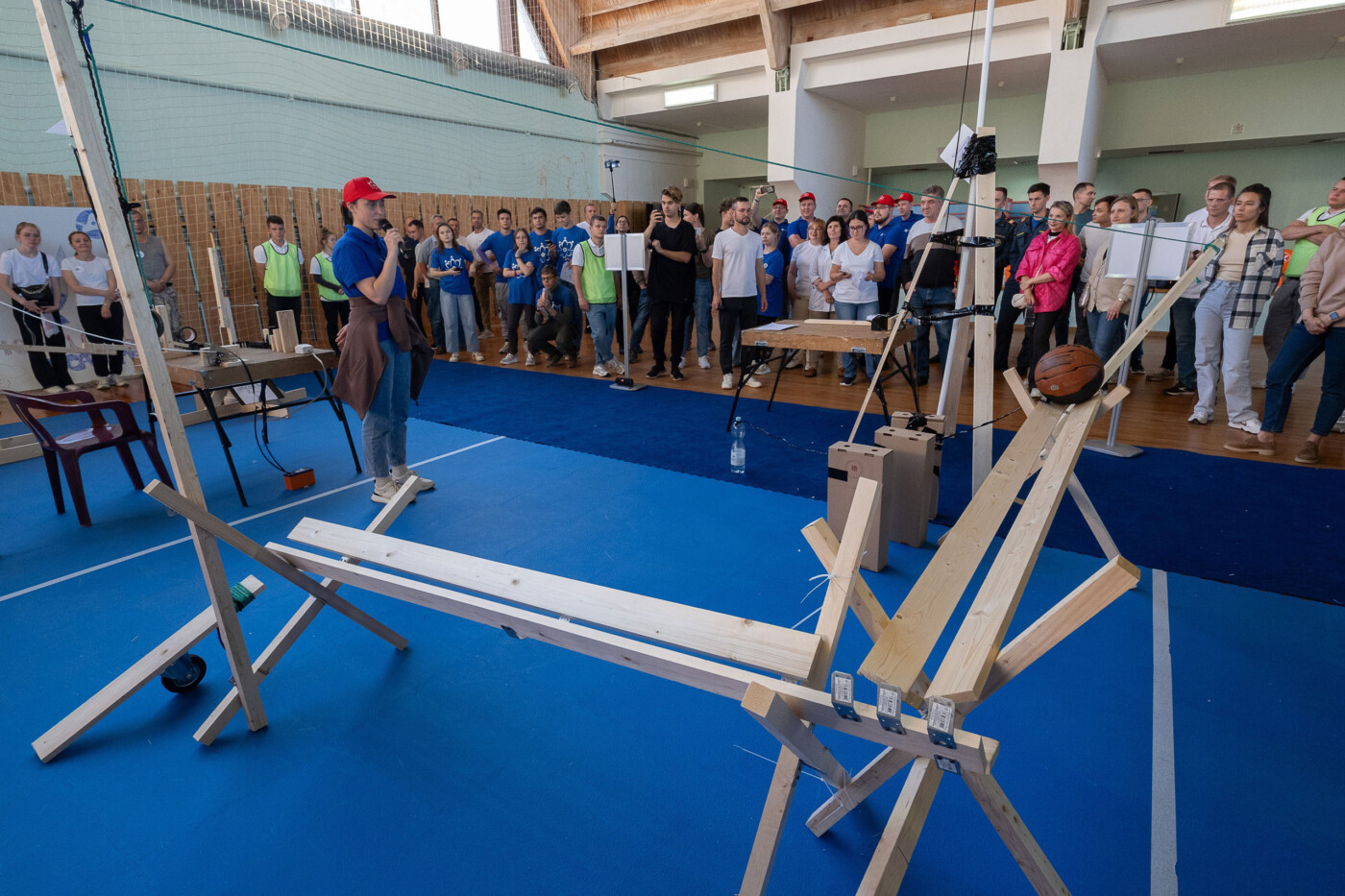 Перед участниками турнира была поставлена непростая задача — придумать машину Голдберга, то есть выстроить последовательную передачу движения от начала конструкции до её последнего элемента за счет падения, толкания, притягивания, перевешивания и других действий.