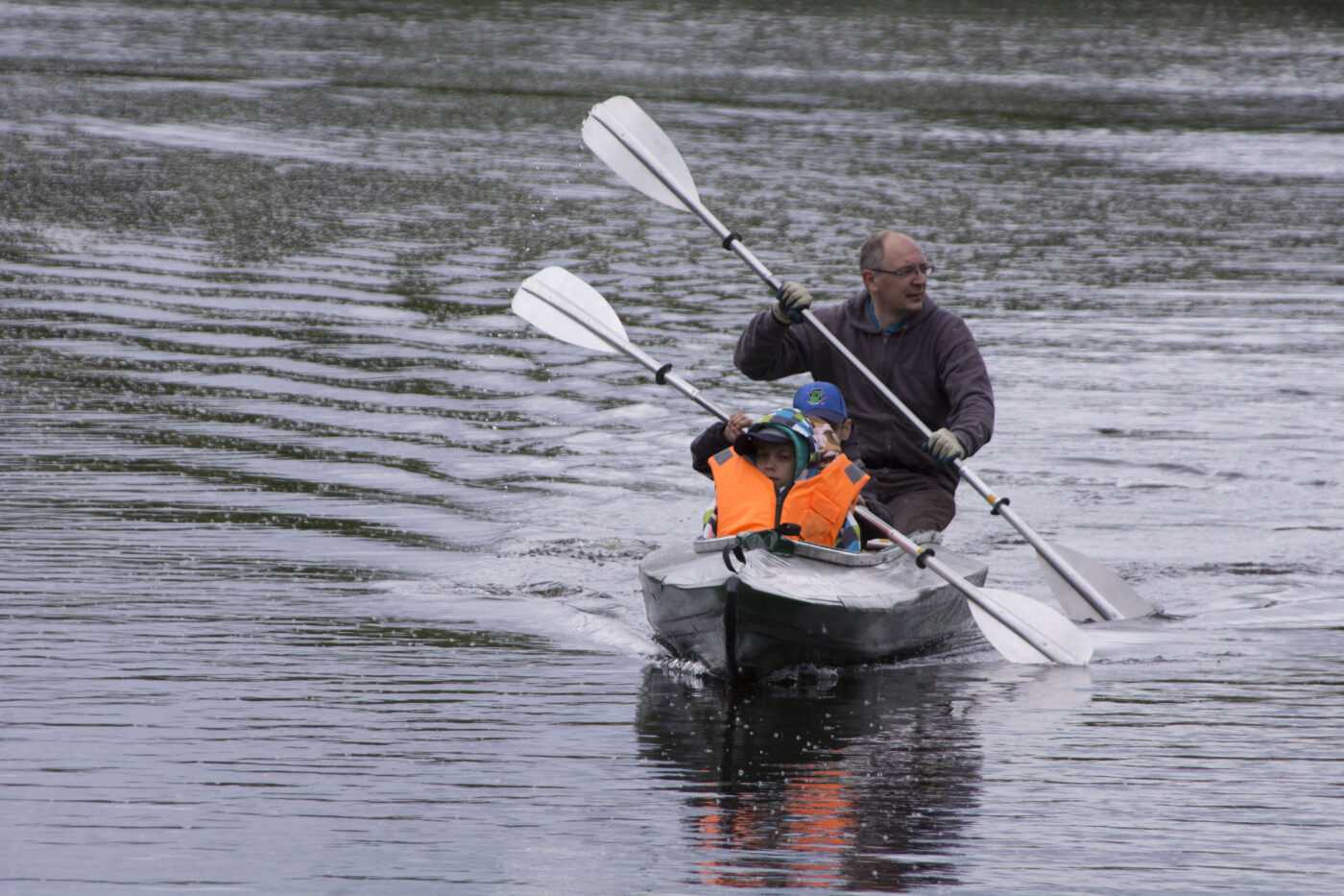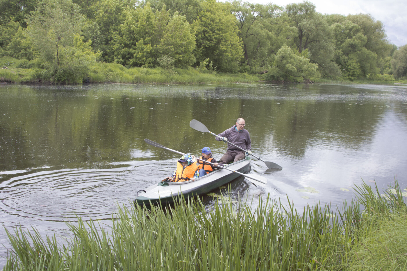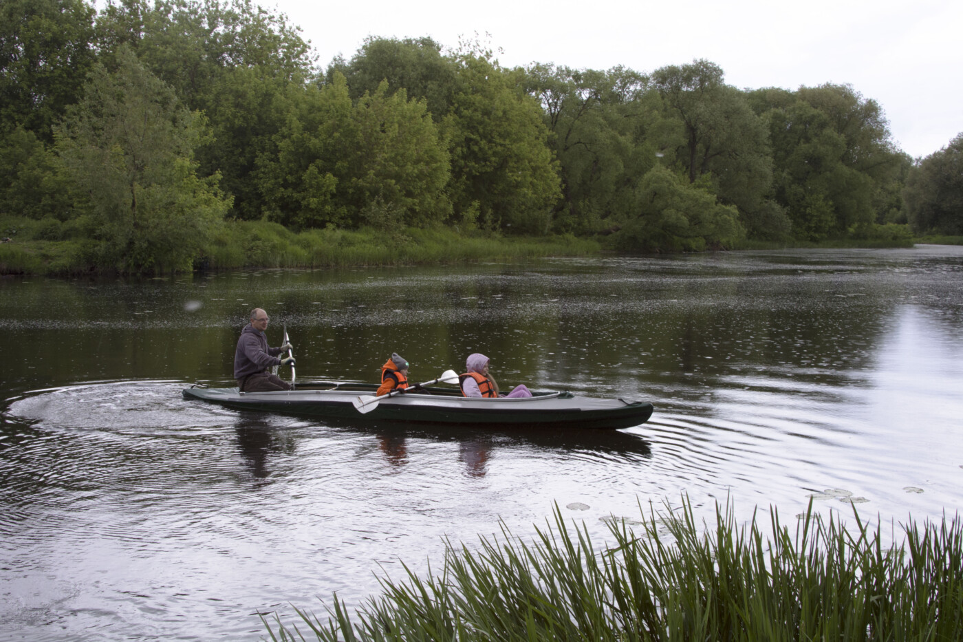 Все с удовольствием плавали по Тьмаке, осваивая навыки водника и параллельно наблюдая за прогулкой мамы-утки с утятами. Ее, впрочем, нисколько не смущало большое количество людей и на берегу, и в воде. Несмотря на холодную погоду и временами срывавшийся дождь, праздник вышел за рамки запланированного времени.