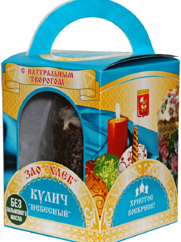 Кулич не только пасхальное блюдо, но и подарок родным и близким. Для таких случаев прекрасно подойдут куличи, упакованные в праздничные коробки, а именно полюбившиеся жителям Верхневолжья творожные куличи «Небесные» и их мини-аналог.
