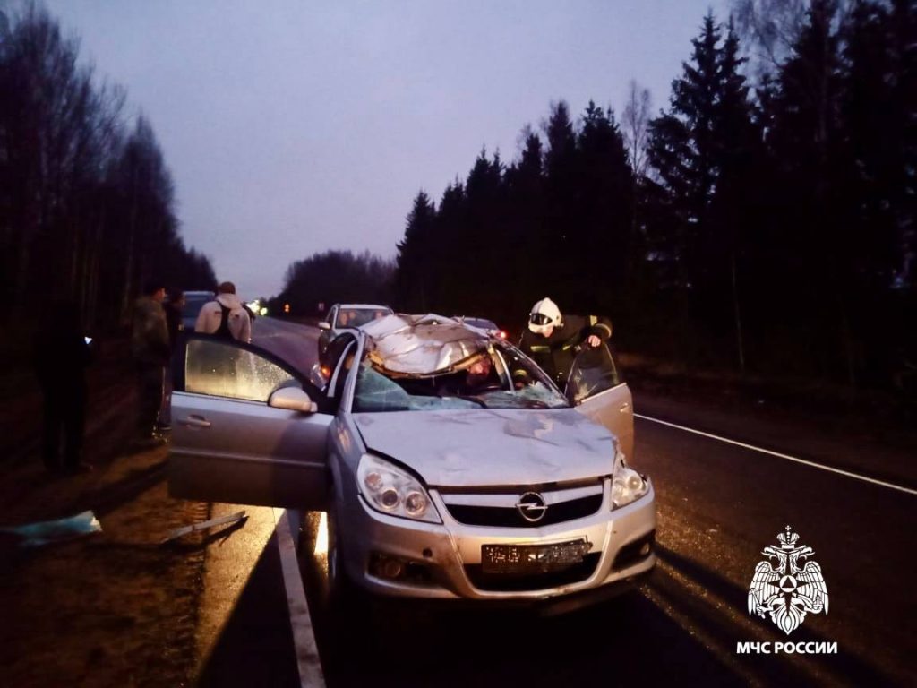 Авария произошла на Ямской улице в Лихославле ранним утром, где машина марки Opel совершила наезд на лося. Самого водителя транспортного средства доставили в лечебное учерждение.