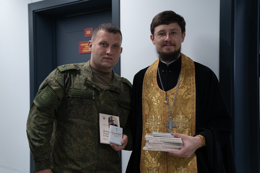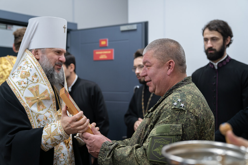 Освятив здание регионального военкомата, владыка Амвросий поблагодарил всех присутствующих за молитвы и передал Валерию Зайко икону святителя Николая Чудотворца, именуемую «Никола Ратный». Кроме того, всем сотрудникам военкомата были розданы книги митрополита Амвросия «Добро пожаловать в Церковь», а также карманные молитвословы и Евангелия.
