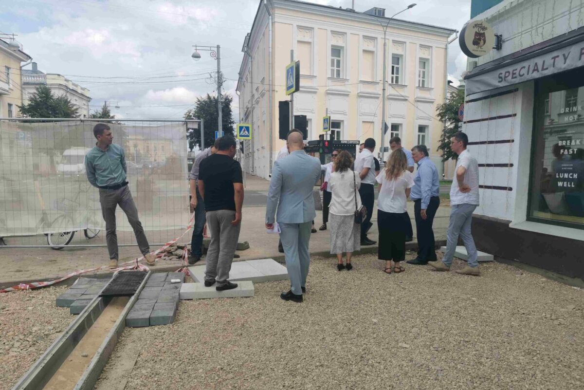 Журналист «Каравана» встретил Алексея Огонькова вместе с его свитой во время осмотра улицы Трехсвятской. Напомним, что реконструкция улицы на участке от Новоторжской до Радищева должна быть завершена к осени 2023 года. Контракт за 65 млн рублей выполняет ООО ПВФ «Экотэр» из Подмосковья.