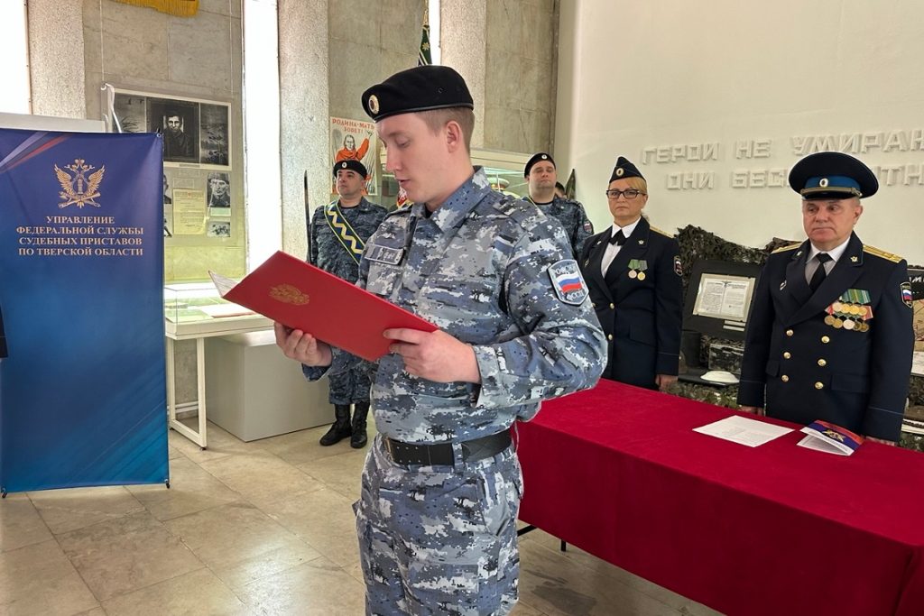 В преддверии празднования 160-й годовщины образования института судебных приставов в Твери в музейно-выставочном центре им. Л. Чайкиной, пропитанном духом истории и патриотизма, молодые судебные приставы районных отделений Управления Федеральной службы судебных приставов по Тверской области принесли присягу на верность народу России и Закону.
