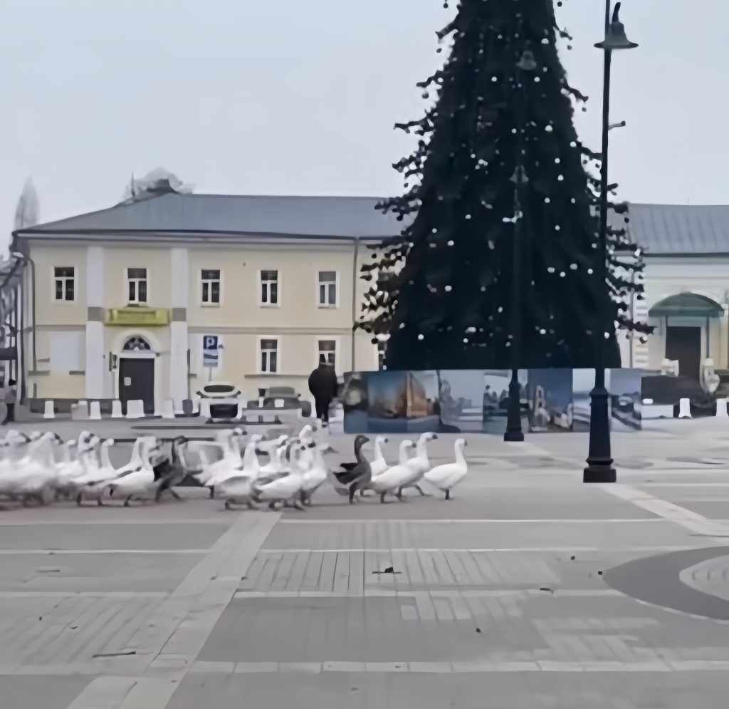 Жители Торжка поделились, что на площади в их городе разгуливают гуси. Об этом рассказали в ВК-сообществе «Торжок Любимый Город.».
