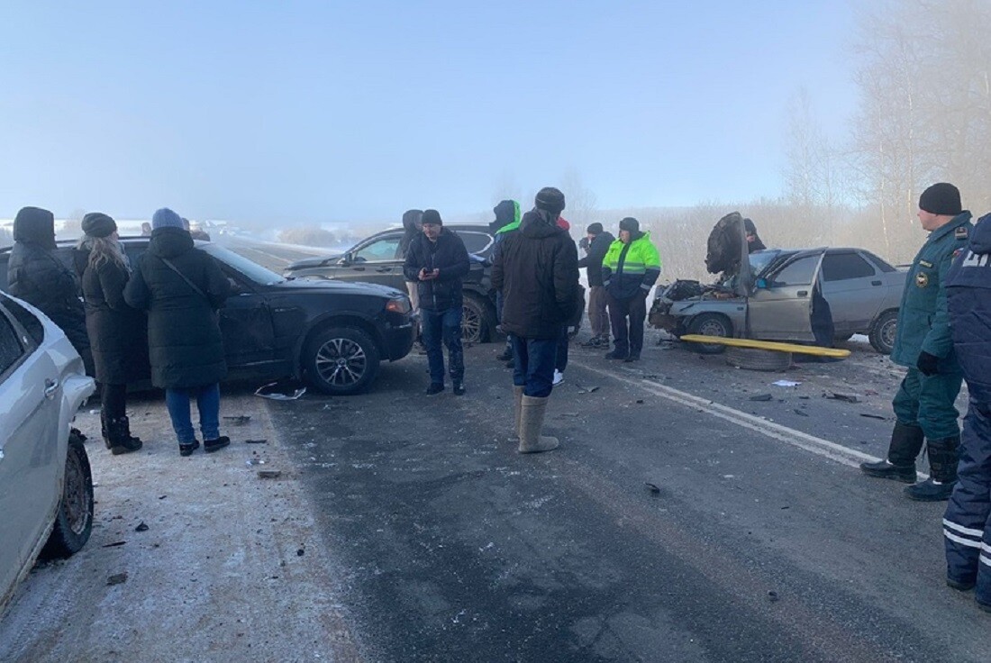 По предварительной информации, неподалеку от деревни Звягино водитель BMW начал тормозить, в результате его протаранил Ford, движущейся сзади. После чего в первые две машины поочередно врезались Hyundai, Kia и ВАЗ-2110.