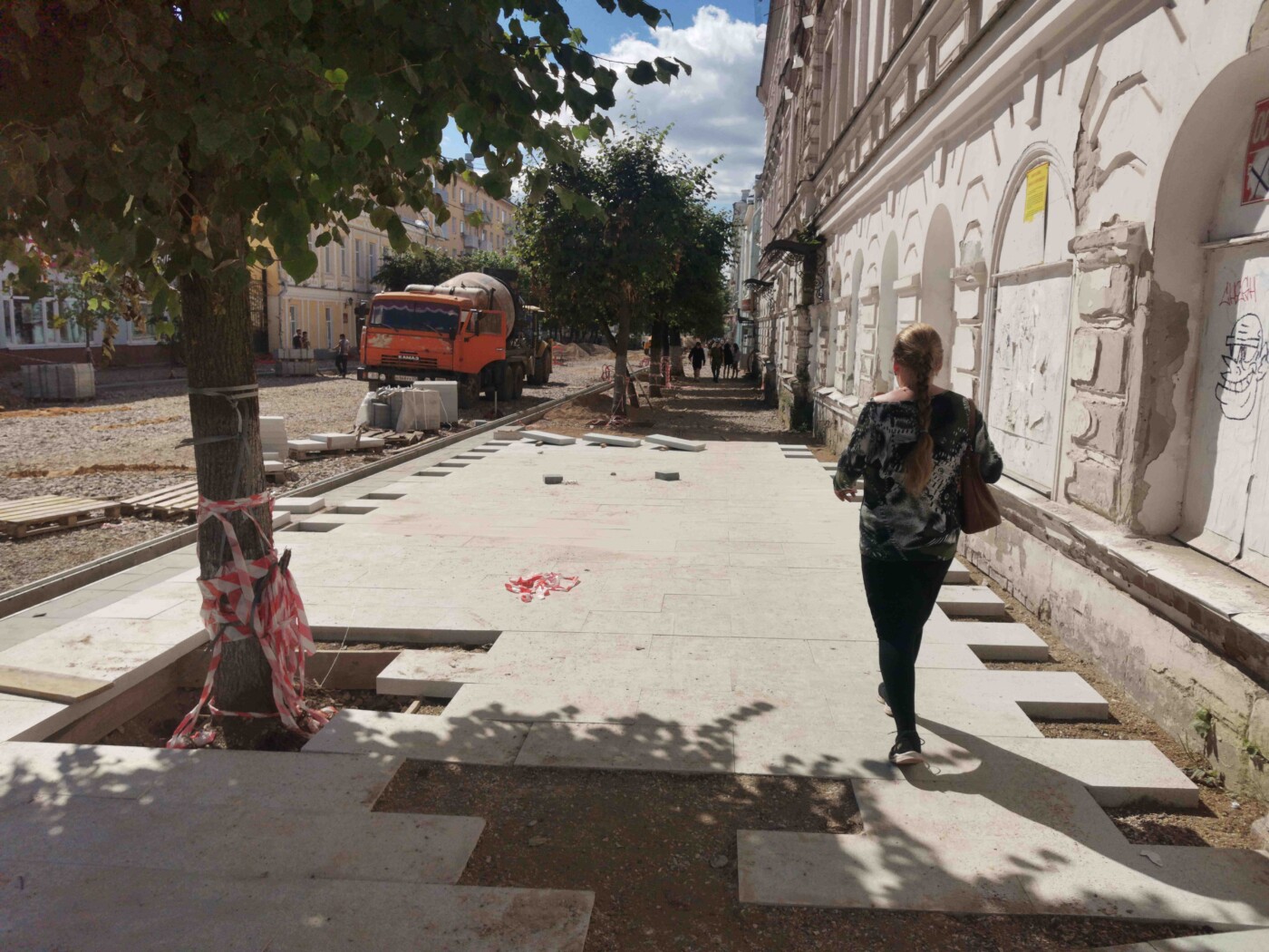 На неделе с 14 по 20 августа 2023 года обещают хорошую погоду. Надеемся, что работы на Трехсвятской продвинутся и скоро по всему участку будет уложена гранитная брусчатка. А значит, по улице наконец-то будет удобно ходить.