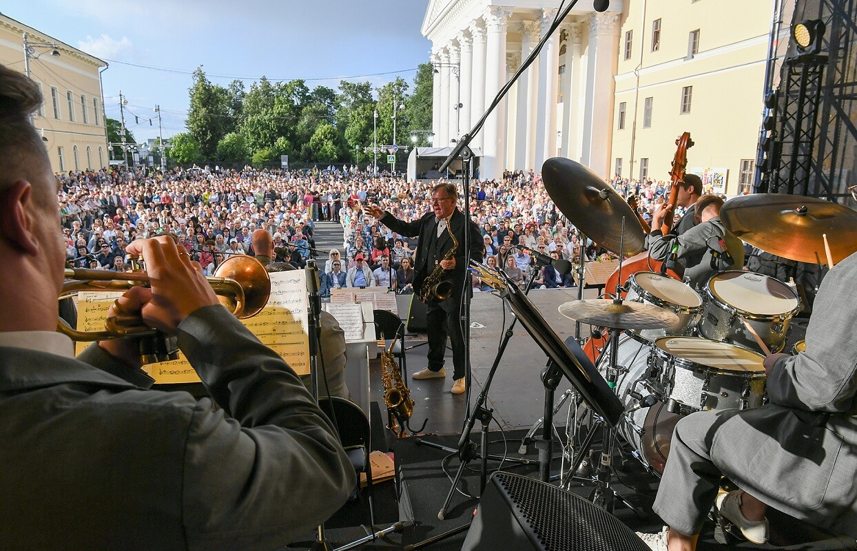 Вечером в пятницу, 21 июля, сотни жителей Твери пришли на Театральную площадь, чтобы послушать джаз в исполнении одного из самых известных музыкальных коллективов России – Московского джазового оркестра под управлением народного артиста России и одного из лучших саксофонистов мира Игоря Бутмана.