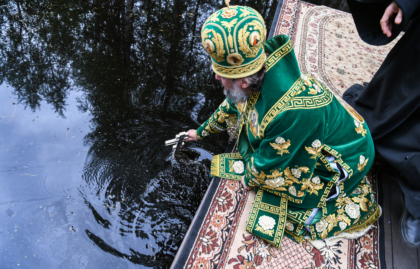 Перед началом крестного хода митрополит Амвросий совершил божественную литургию в Спасо-Преображенском соборе Ольгина монастыря. Затем он освятил исток Волги.
