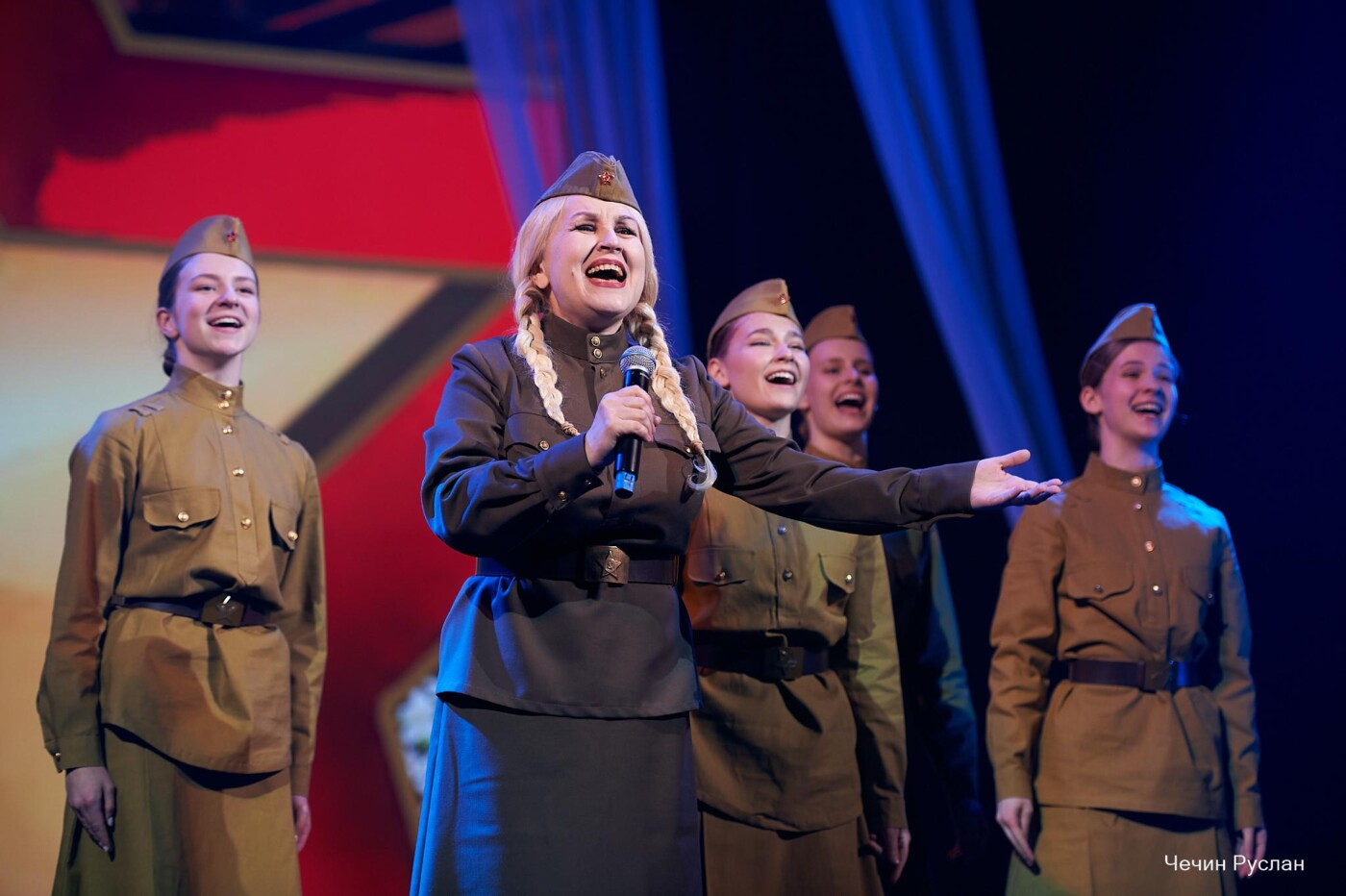 В День Победы зрители услышали любимые многими поколениями военные песни. Когда артист Алексей Майский пел песню «От героев былых времен» (из фильма «Офицеры») весь зал встал. Пронзительно исполнила песню «До свидания, мальчики» Булата Окуджавы артистка Дарья Плавинская. Зрители услышали в этот вечер «Катюшу», «Темную ночь», «Случайный вальс», «Смуглянку», «Десятый наш десантный батальон», «День Победы» и другие военные песни.