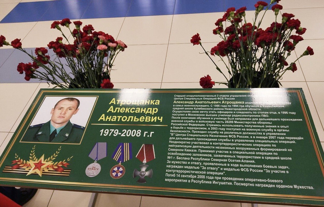 Александр Атрощанка погиб 14 сентября 2008 года при исполнении воинского долга в Ингушетии.