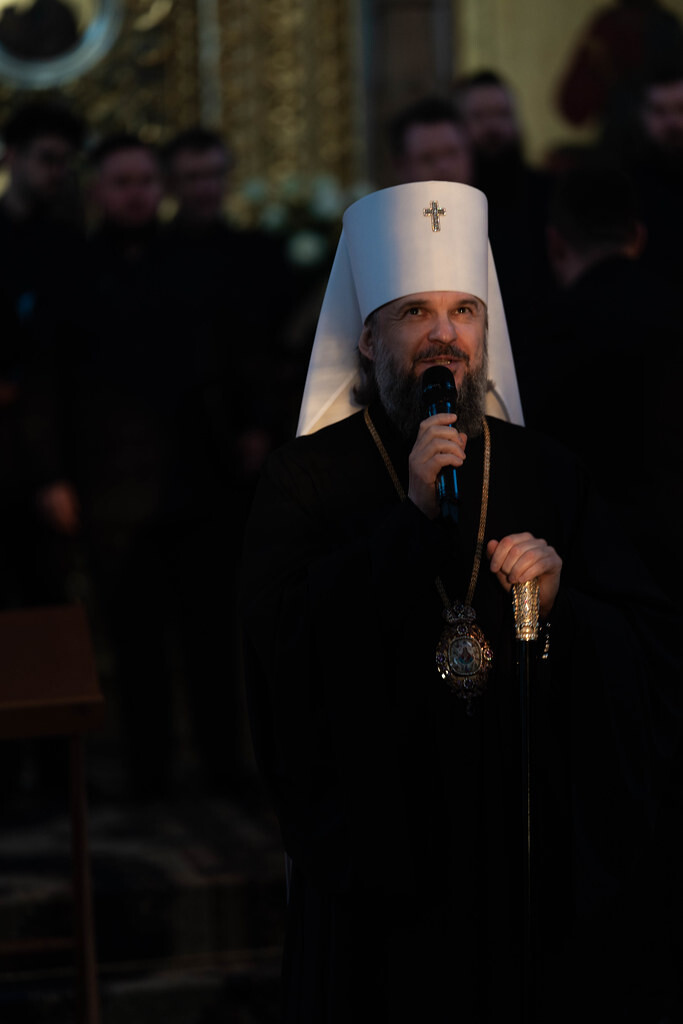 «Некоторые из участников хора тогда пришли молодыми студентами хоровой академии имени Свешникова, были там и студенты Московской духовной академии. Конечно, состав сильно поменялся. Мне радостно, что именно концерт духовных песнопений нас всех собрал: хор славится исполнением разных песенных произведений, но, поскольку хор монастырский, первое, что он призван исполнять, – это песнопения, которые написали люди, вдохновленные словами Священного Писания и словами молитв» – с такими словами обратился к собравшимся в храме владыка Амвросий.
