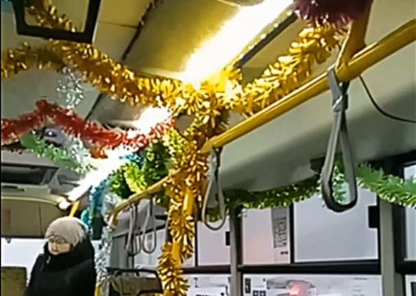 Жители Твери обнаружили в городе по-новогоднему украшенный автобус «Транспорта Верхневолжья». Видео из салона автобуса опубликовано в сообществе «Осторожно: Тверь» Вконтакте.