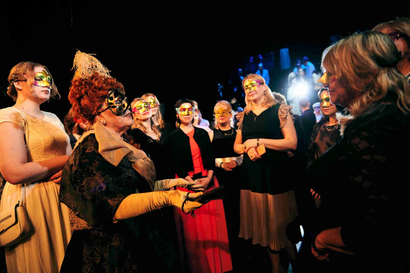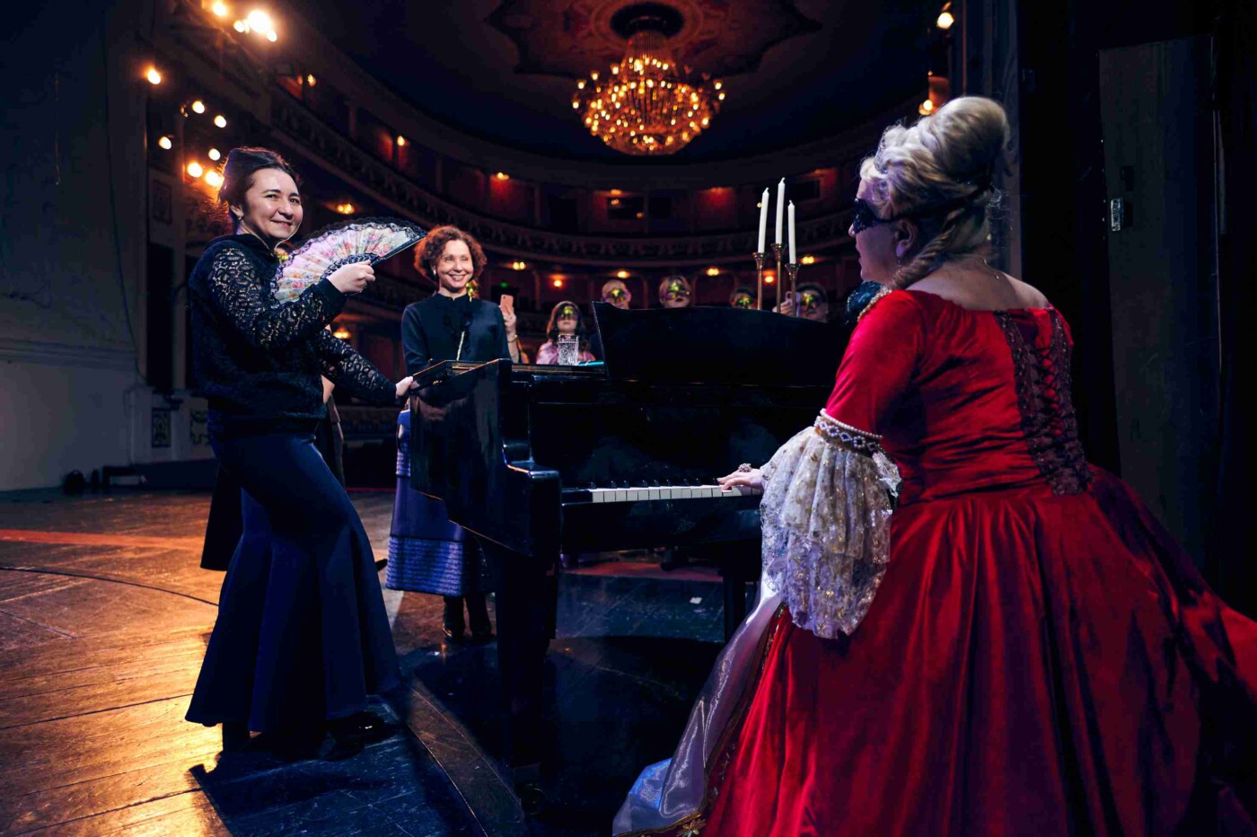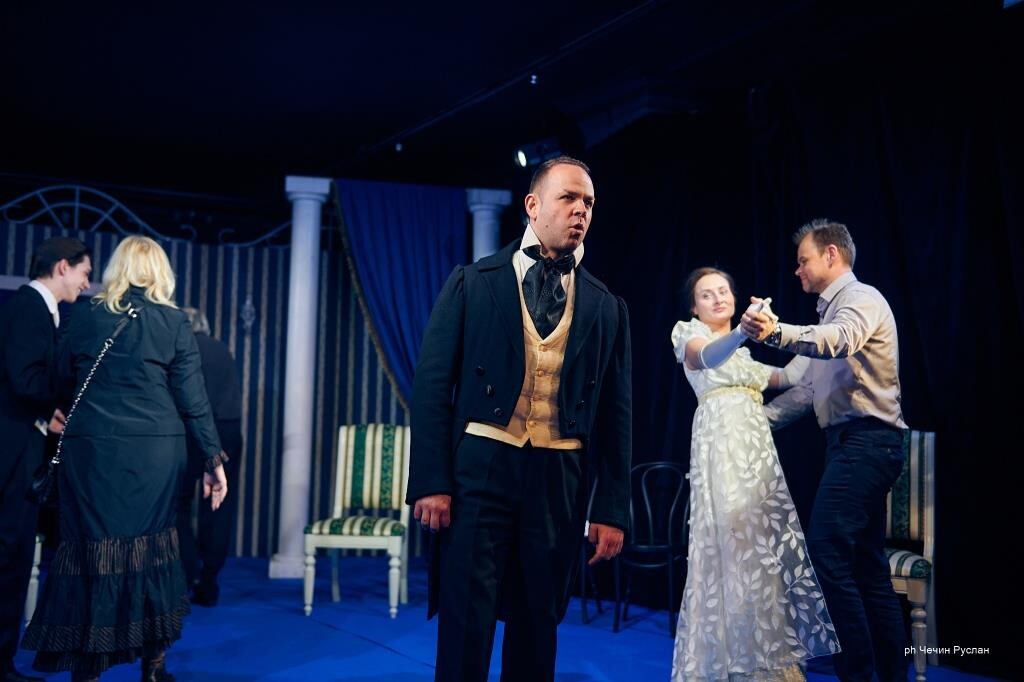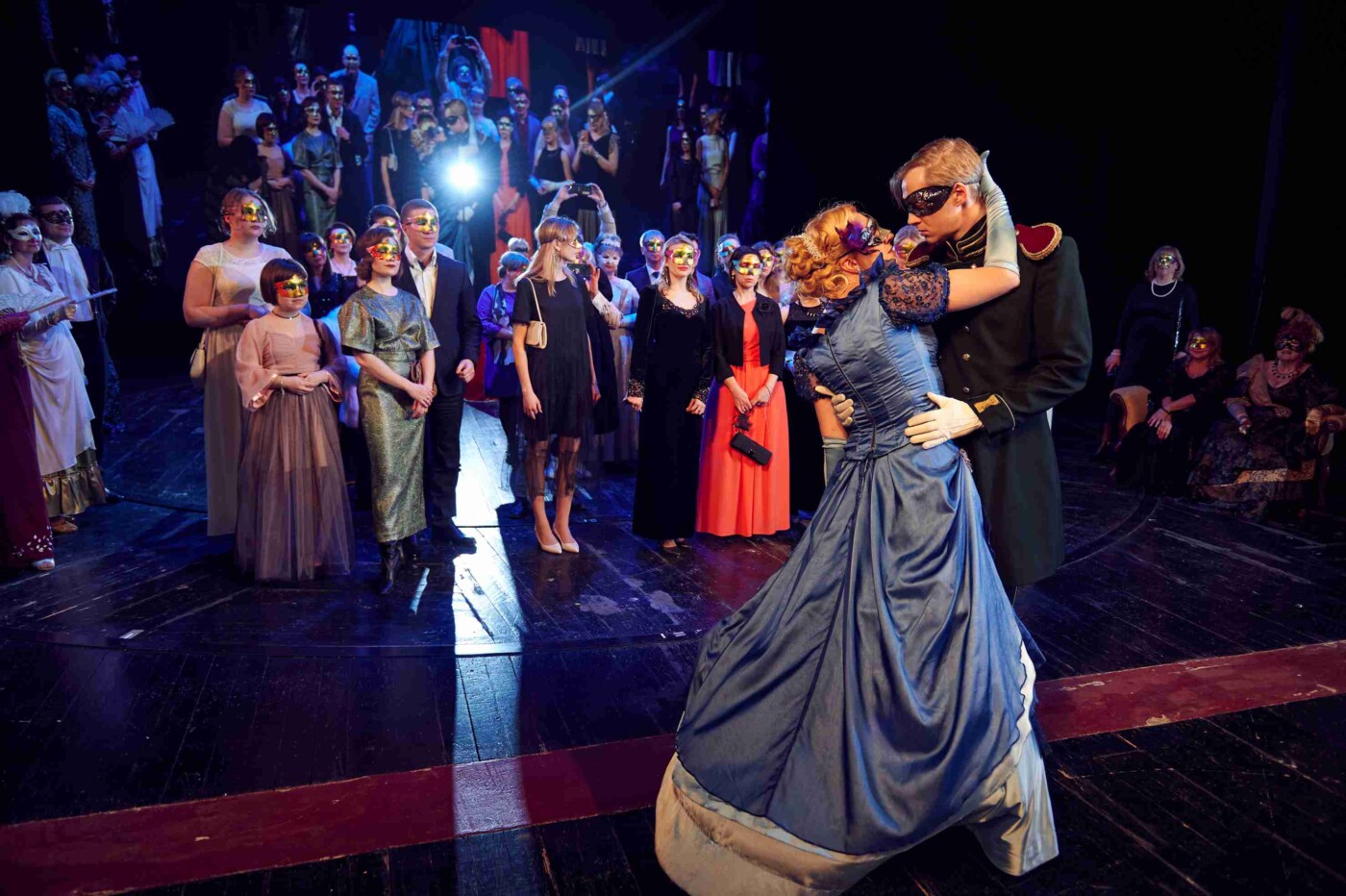 На большой сцене гости, надев маски, оказались на балу из спектакля «Маскарад». Напомним, что этот спектакль в 2008 году поставила тогдашний главный режиссер театра народная артистка России Вера Ефремова, и каждый раз он шел при полном зале.