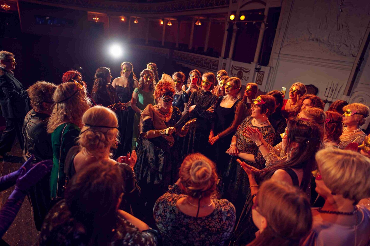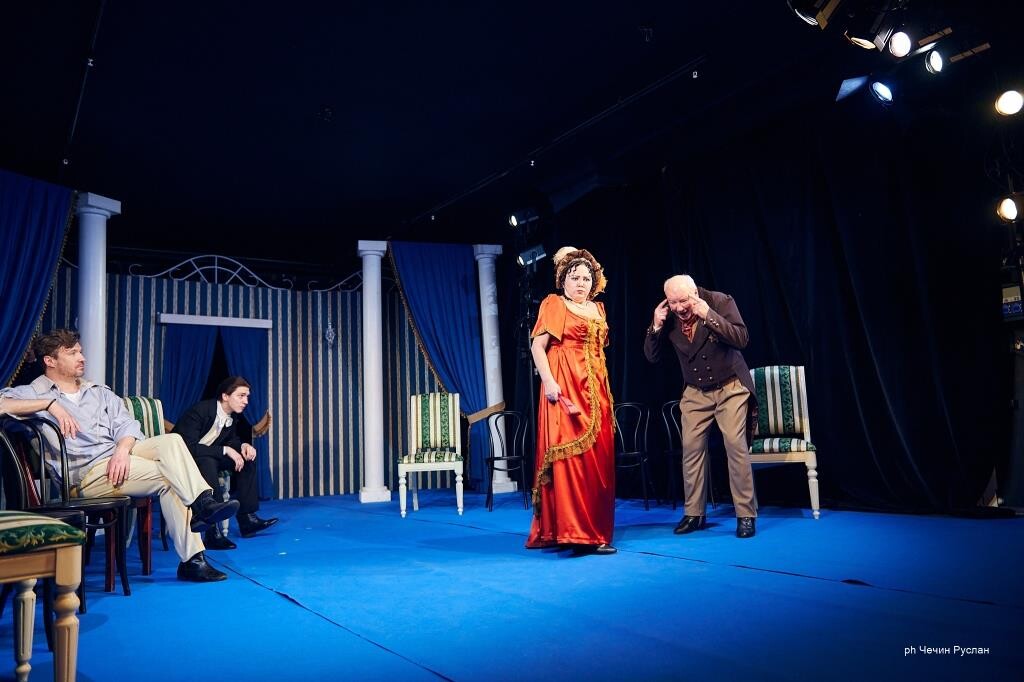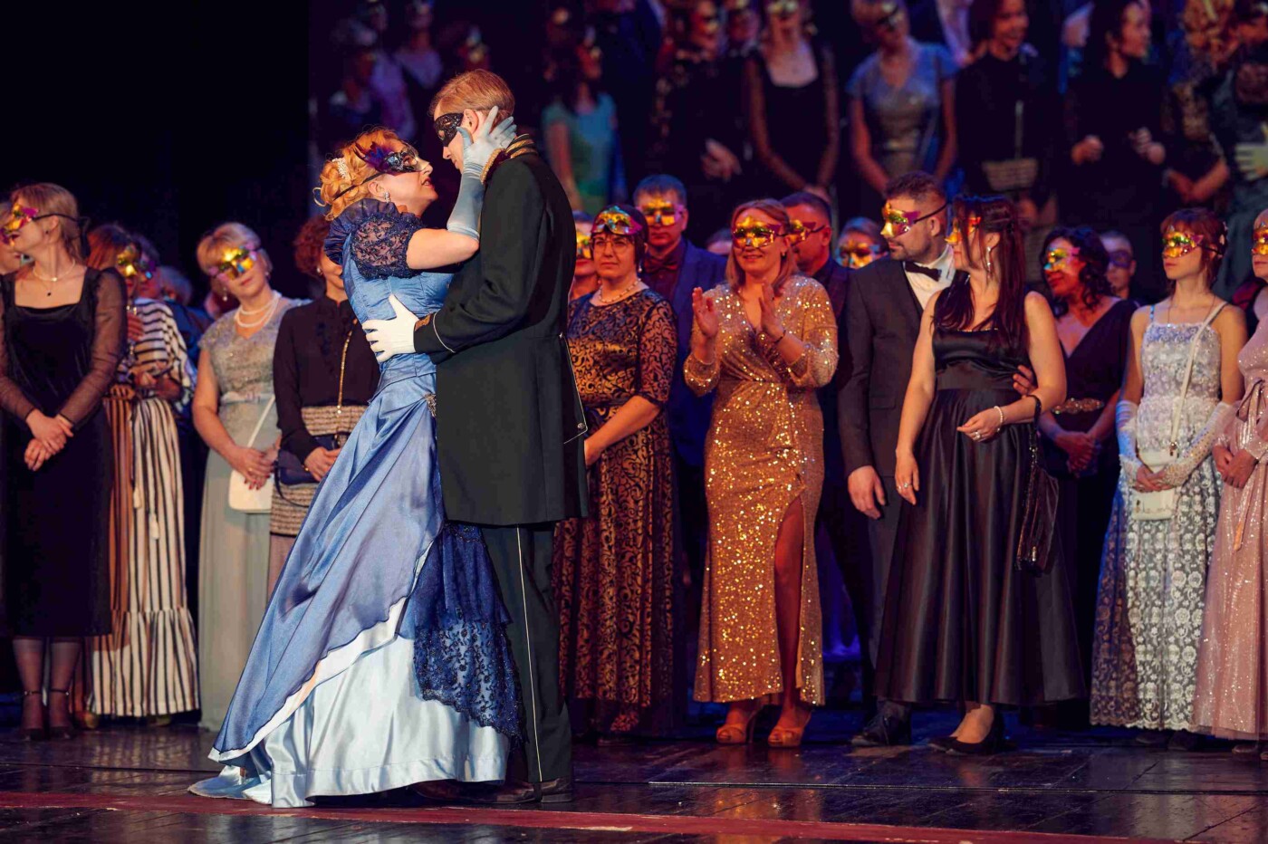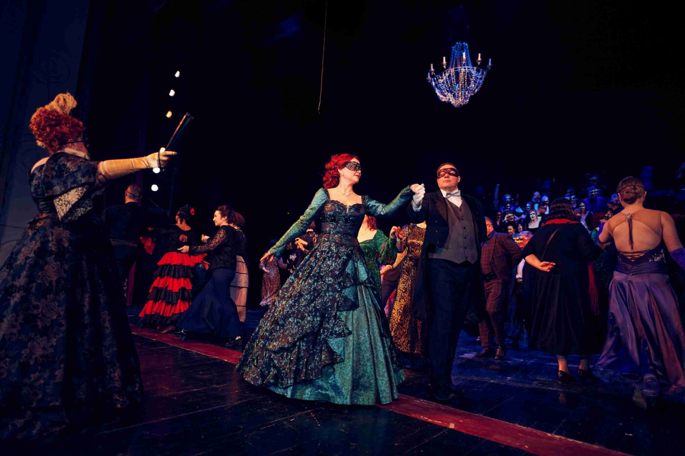На большой сцене гости, надев маски, оказались на балу из спектакля «Маскарад». Напомним, что этот спектакль в 2008 году поставила тогдашний главный режиссер театра народная артистка России Вера Ефремова, и каждый раз он шел при полном зале.