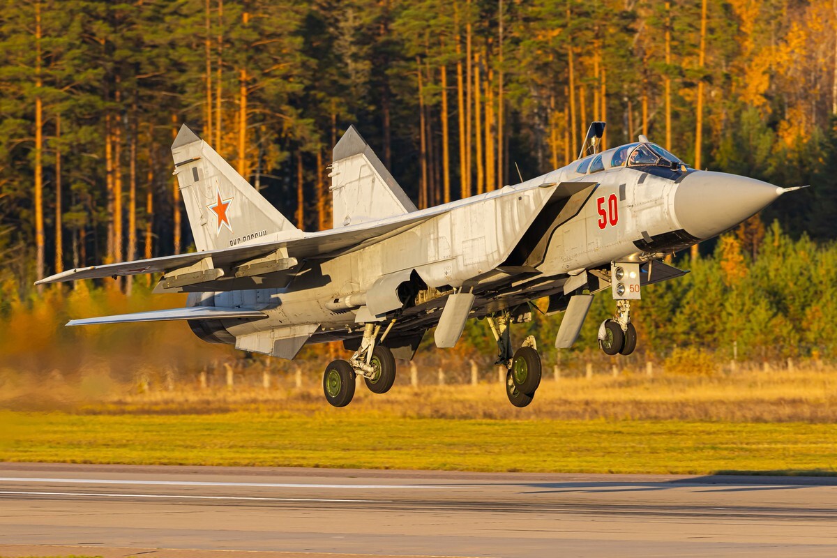 Экипажи сверхзвуковых истребителей МиГ-31бм, взлетая с аэродрома базирования, отрабатывали под Тверью перехват и поражение пилотируемых и беспилотных воздушных судов, приемы ведения боя в небе, а также уход от атаки самолетов условного противника.