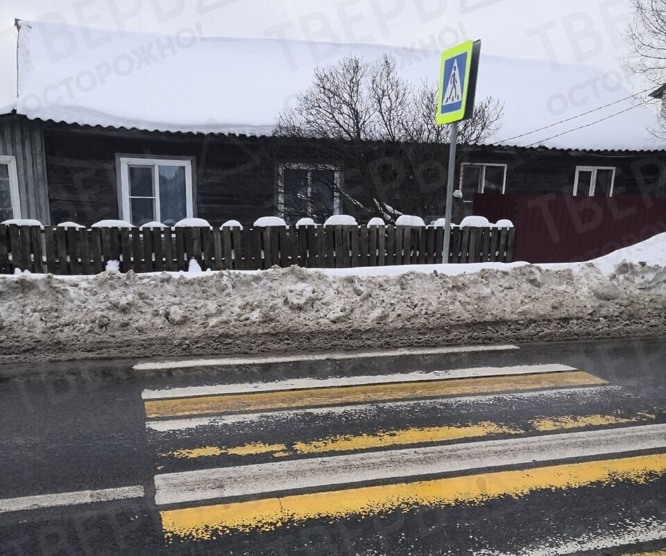 С разных концов Тверской области продолжают звучать жалобы на работу служб по уборке снега. Фото с пешеходным переходом, одна из сторон которого засыпана снегом, опубликовано в сообществе «Осторожно: Тверь» Вконтакте.