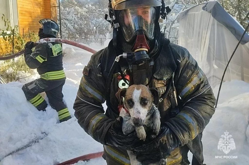 В дачном поселке под Тверью сотрудники МЧС во время тушения пожара спасли собаку. Животное не пострадало.