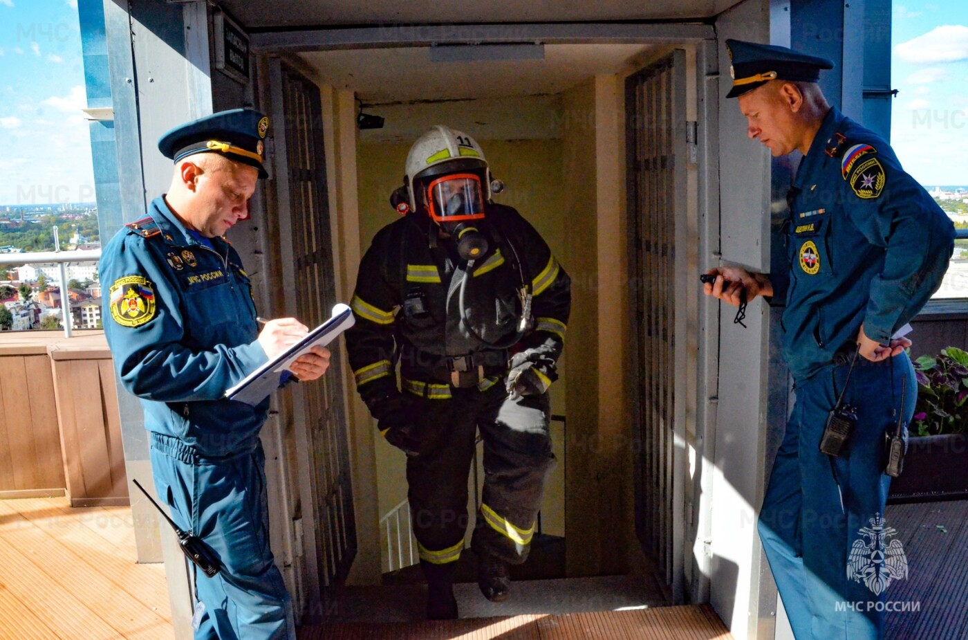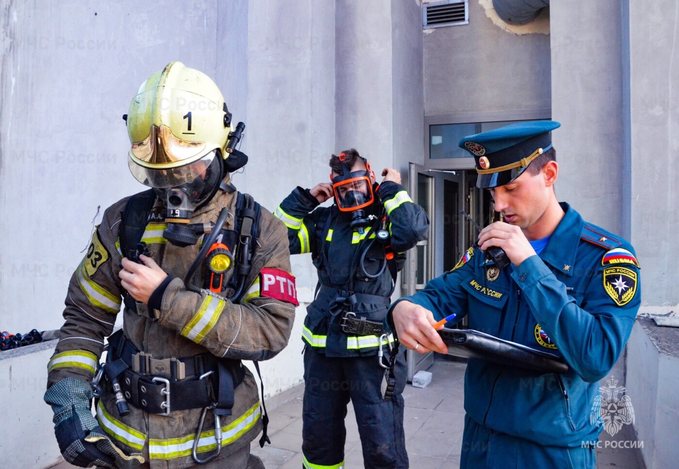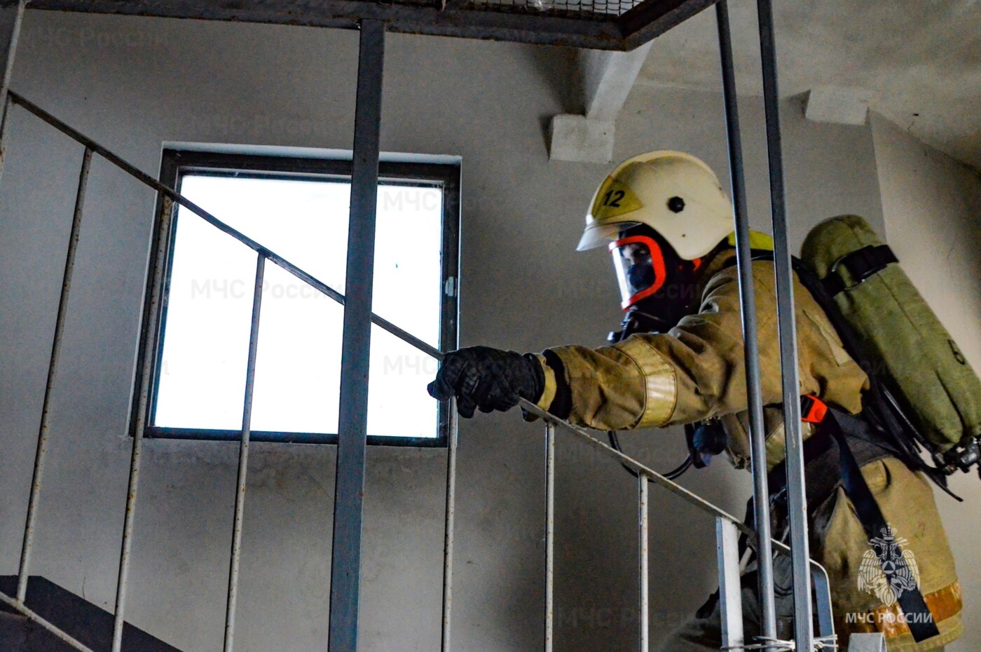 Им предстояло пройти скоростной подъем на время в экипировке пожарного с включением в индивидуальные средства защиты органов дыхания (дыхательные аппараты) по незадымляемой лестничной клетке на 22 этаж высотного здания.