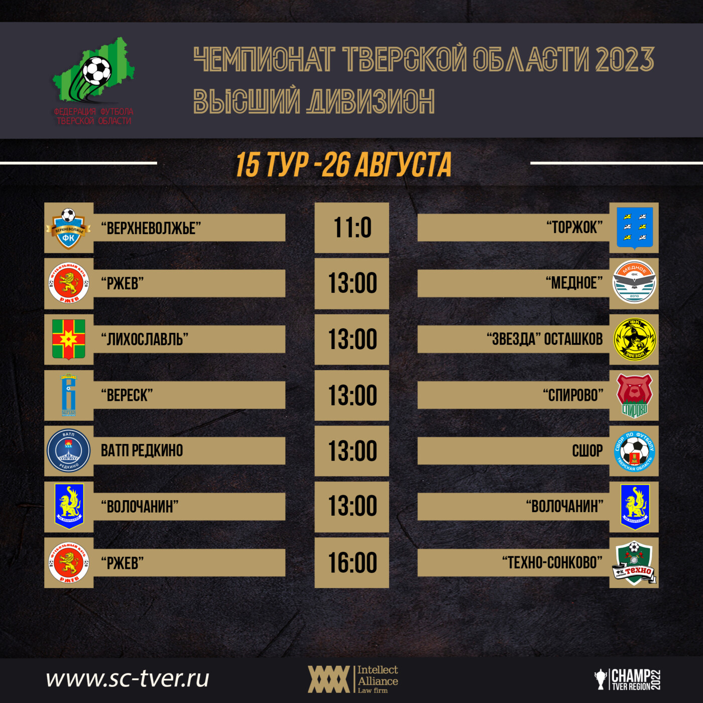 25 августа в Тверской области пройдут матчи 15 тура Чемпионата Тверской области по футболу. Представляем превью, подготовленное пресс-службой СК «Тверь».