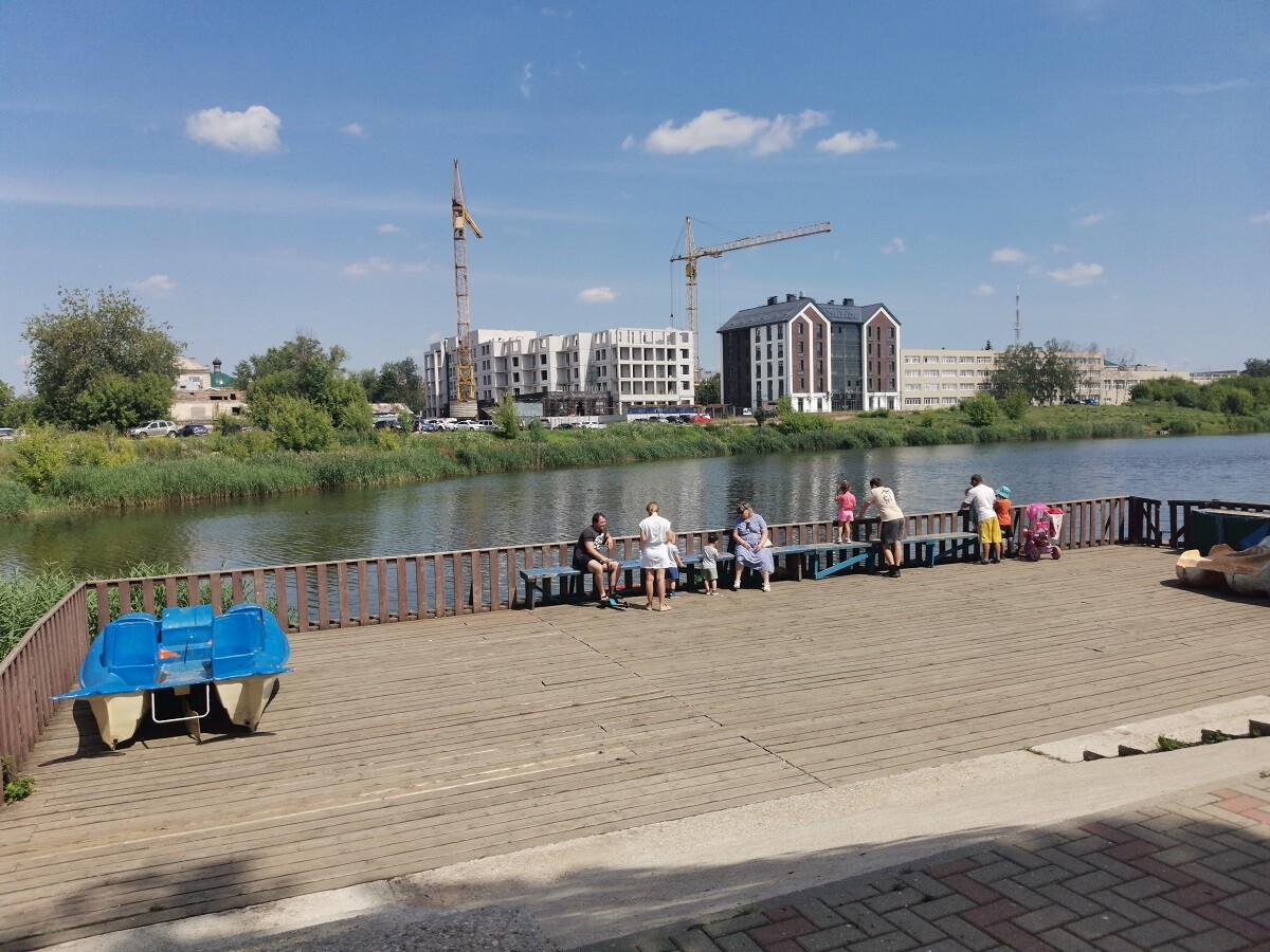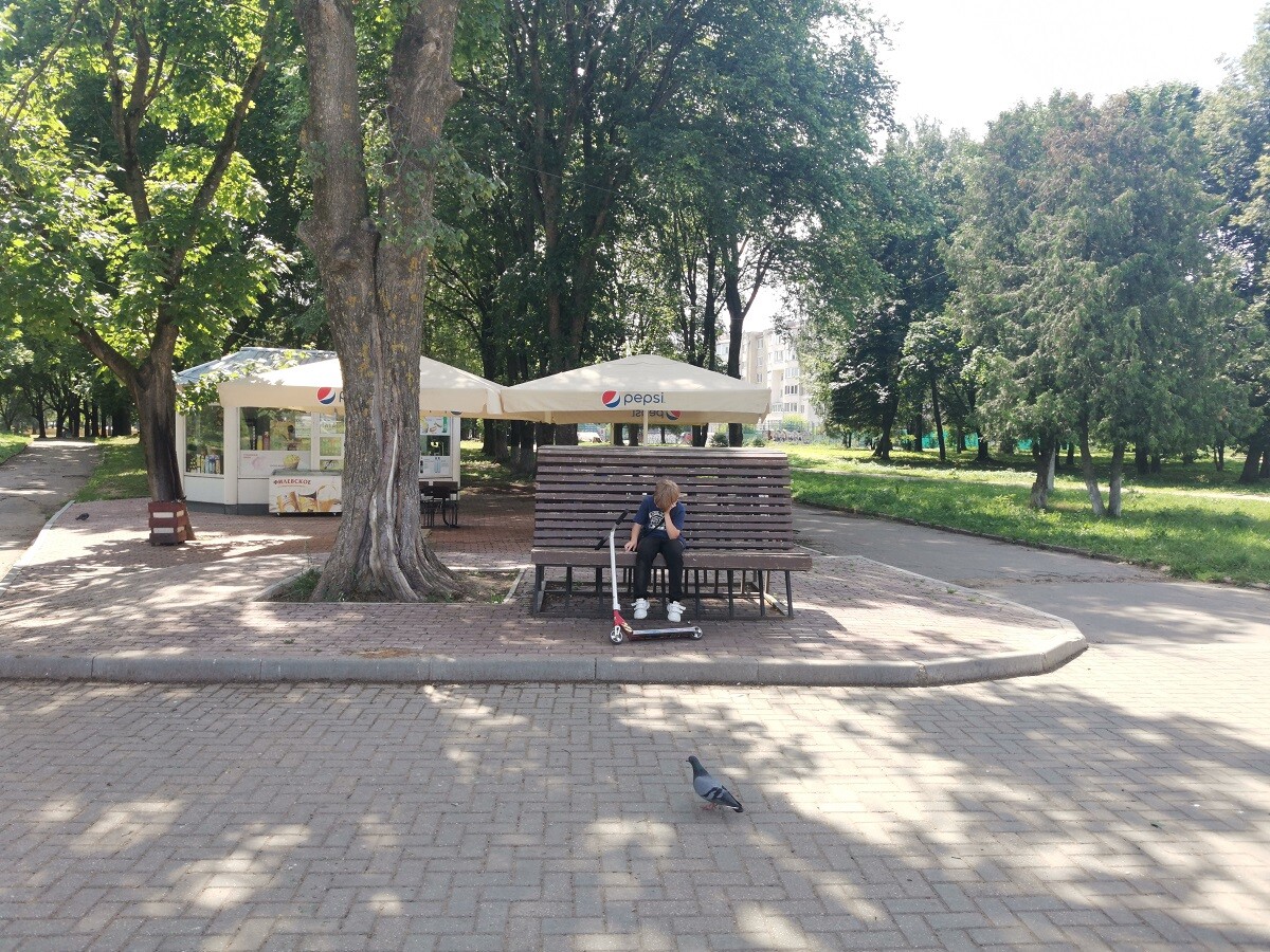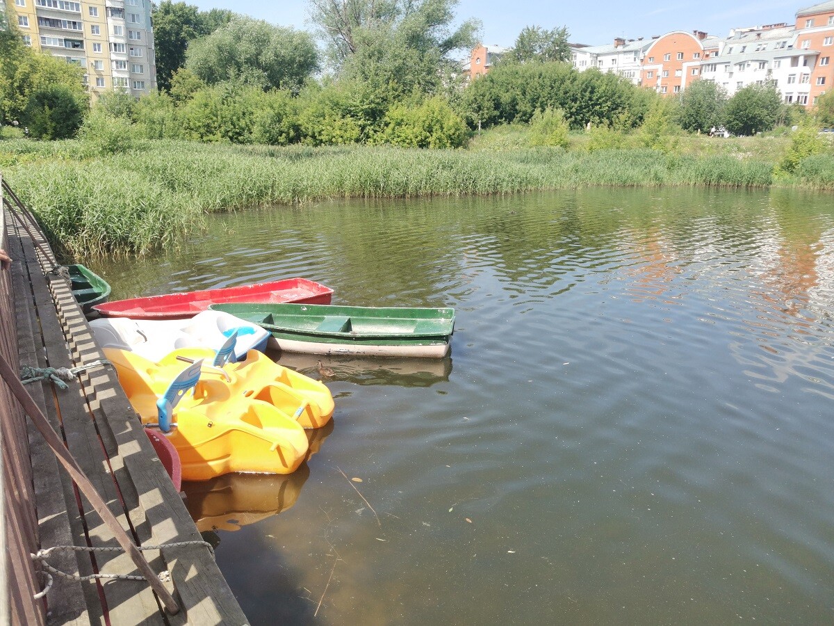 В погожие летние деньки парк выглядит достаточно опрятно. Здесь вовремя косят траву и обрезают деревья, активно работает несколько зон детских аттракционов и лодочный причал у берега многострадальной реки Лазури.
