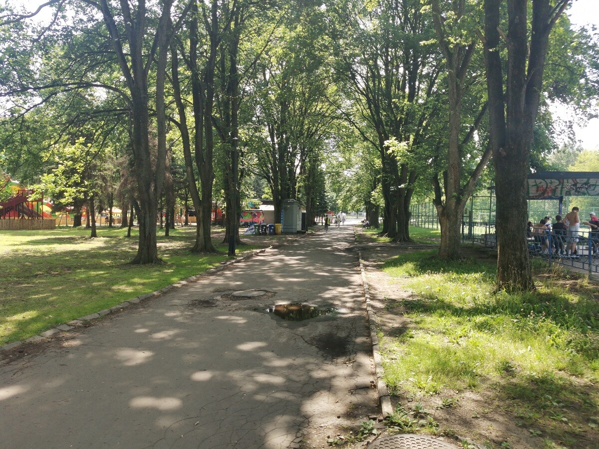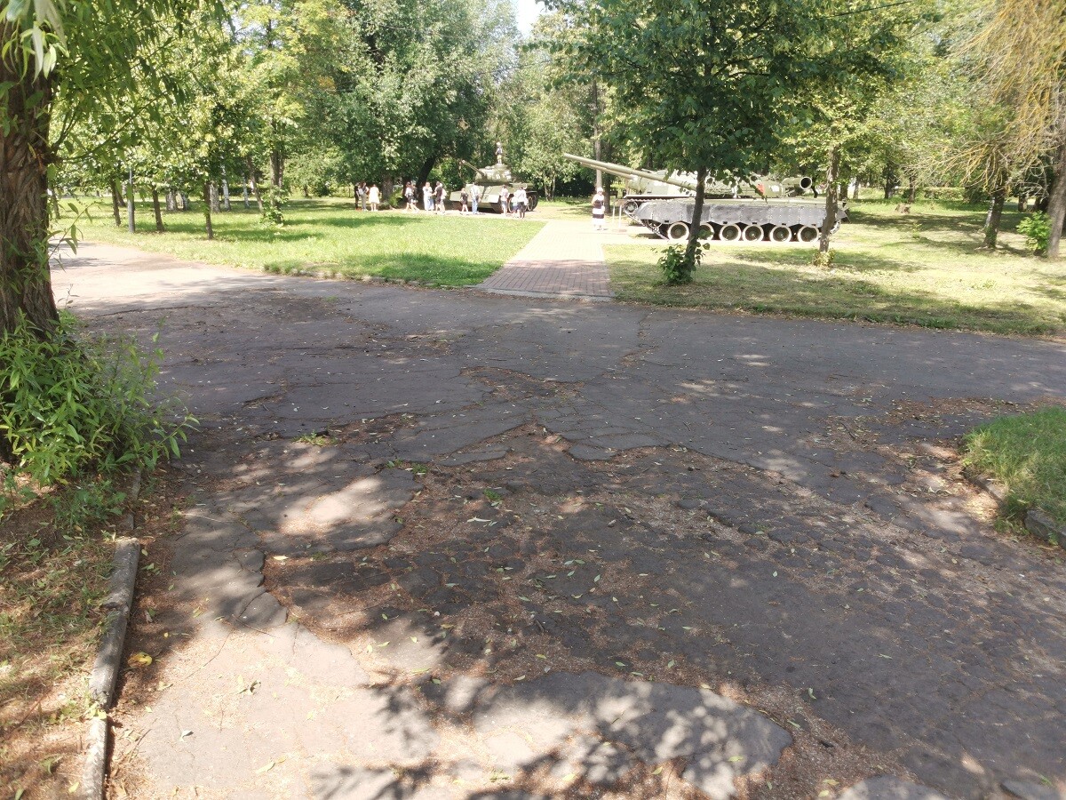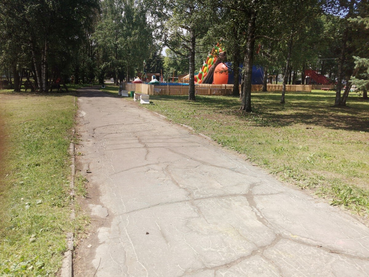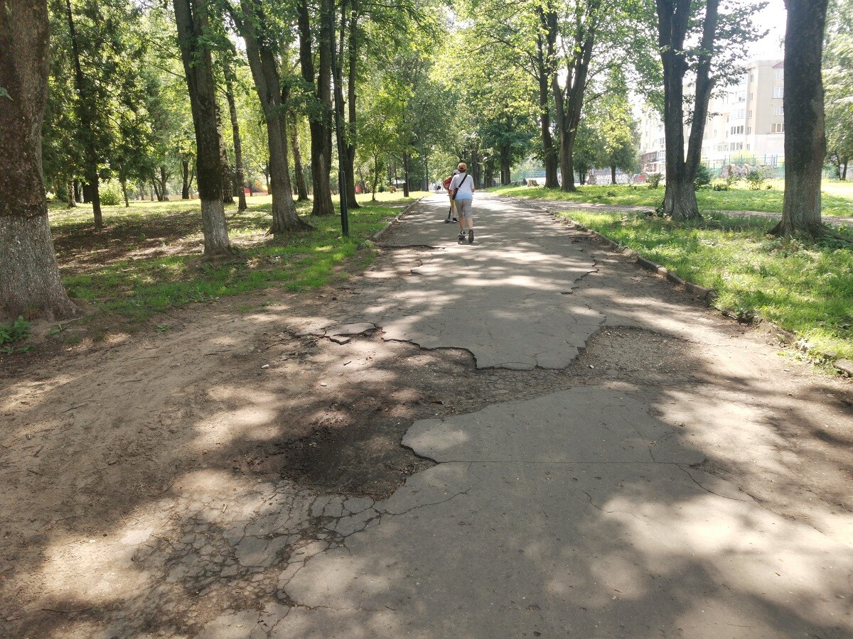Часть асфальтовых дорожек парка покрылась трещинами, а в некоторых местах покрытие и вовсе разбито ямами. Ездить по ним на велосипеде или самокате опасно (уж не говоря о том, что официально здесь нет велодорожек и можно сбить гуляющих по парку взрослых и детей).