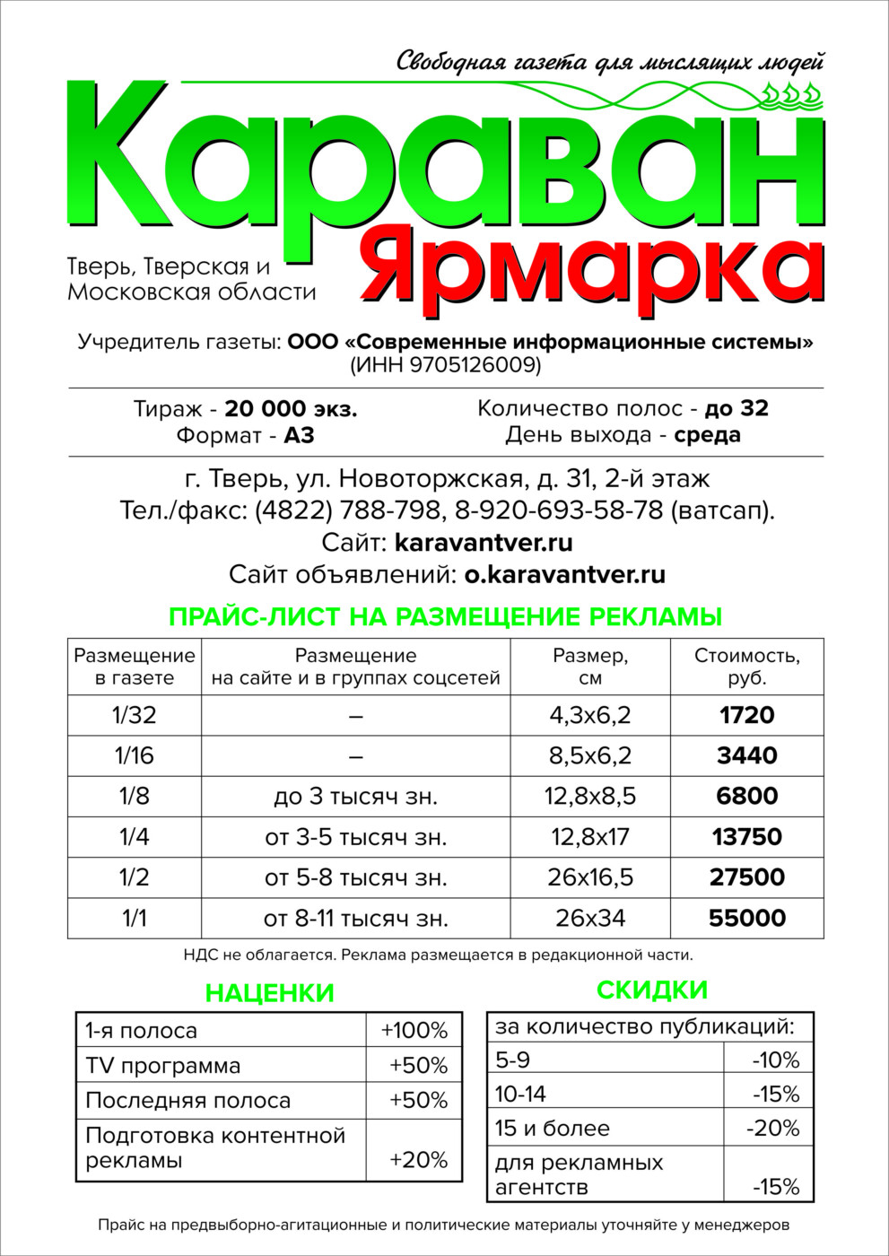 Отдел рекламы, тел./факс: (4822) 33-91-20