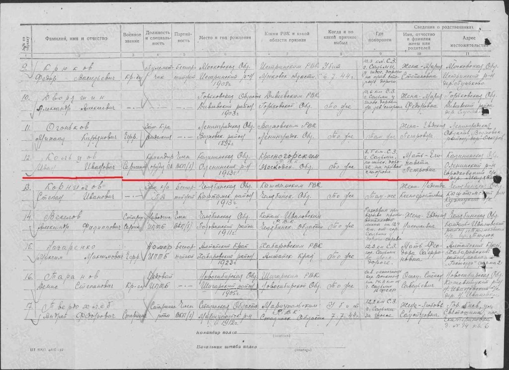 - Место службы: 1063-й стрелковый полк, 272-я стрелковая дивизия.
