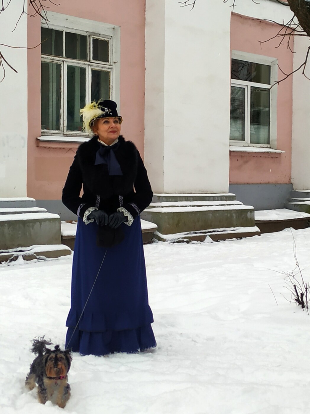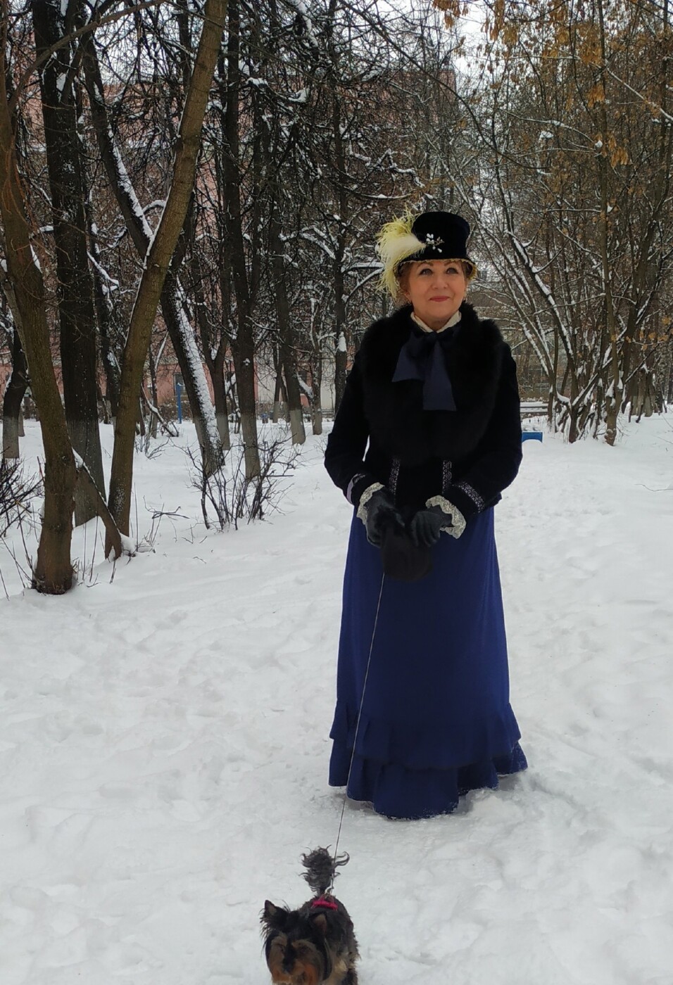 И вот уже прогулка в припорошенный чистым пушистым снегом городской сквер с маленькой и любопытной собачкой по кличке Кристи. В качестве головного убора для зимнего сезона новая бархатная шляпка, фасон называется франциск, по мотивам картины Н.И.Крамского «Неизвестная», 1883г. Каждый из нас был в Третьяковской галерее и великолепная картина художника-передвижника производит неизгладимое впечатление почти на каждого посетителя.