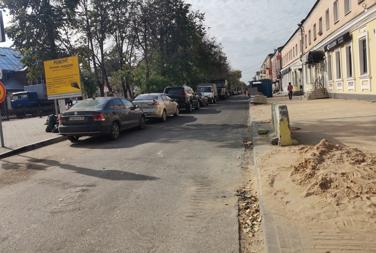 «Караван» писал, что из-за ремонтных работ, а именно по причине укладки гранитной брусчатки на пересечении бульвара и улицы Трехсвятской , сквозное движение по Радищева ограничено до 15 сентября.
