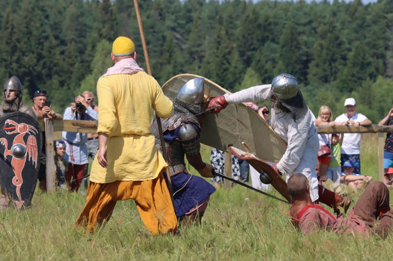 Особый интерес у зрителей традиционно вызвали богатырские поединки, которые проходили на ристалище. Здесь можно было увидеть сражения на мечах, топорах и копьях, а также соревнования лучников. Бойцы бились как в индивидуальных схватках, так и в бугуртах – многолюдных сражениях. В одном из них, кстати, приняли участие сразу 184 воина.