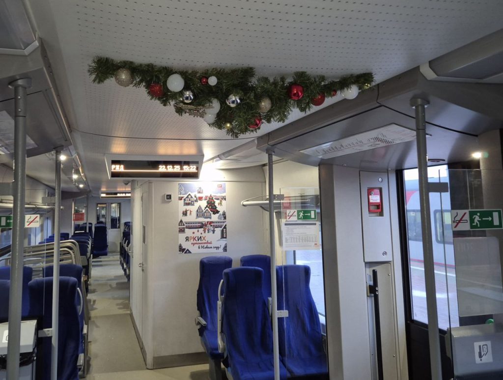 До Нового года остаётся совсем мало времени, а работники РЖД продолжают создавать праздничную атмосферу пассажирам — они оформили в новогоднем стиле поезда «Ласточка» серии «Комфорт». Это создает ощущение приближающегося торжества, пассажиры смогут наслаждаться уютом зимних праздников прямо во время поездки.