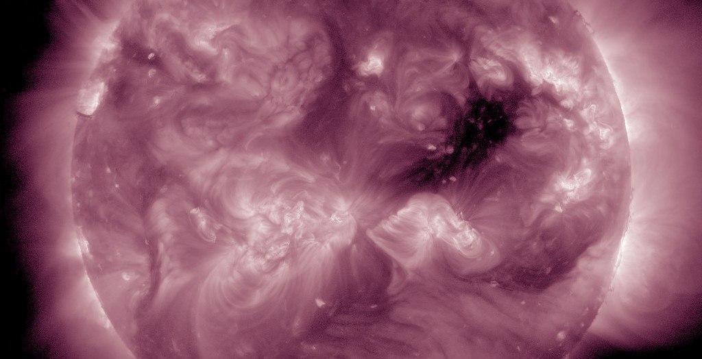 В любом случае уже завтра всё это прервётся по довольно обидной причине — одна единственная, едва заметная, корональная дыра, существующая сейчас на видимой стороне, сумела выйти в единственное положение на Солнце, с которого она может повлиять на Землю. Геомагнитные индексы, по видимому, начнут расти уже в течение ближайших 24 часов и уже завтра должны вернуться в привычную желтую и красную зону.