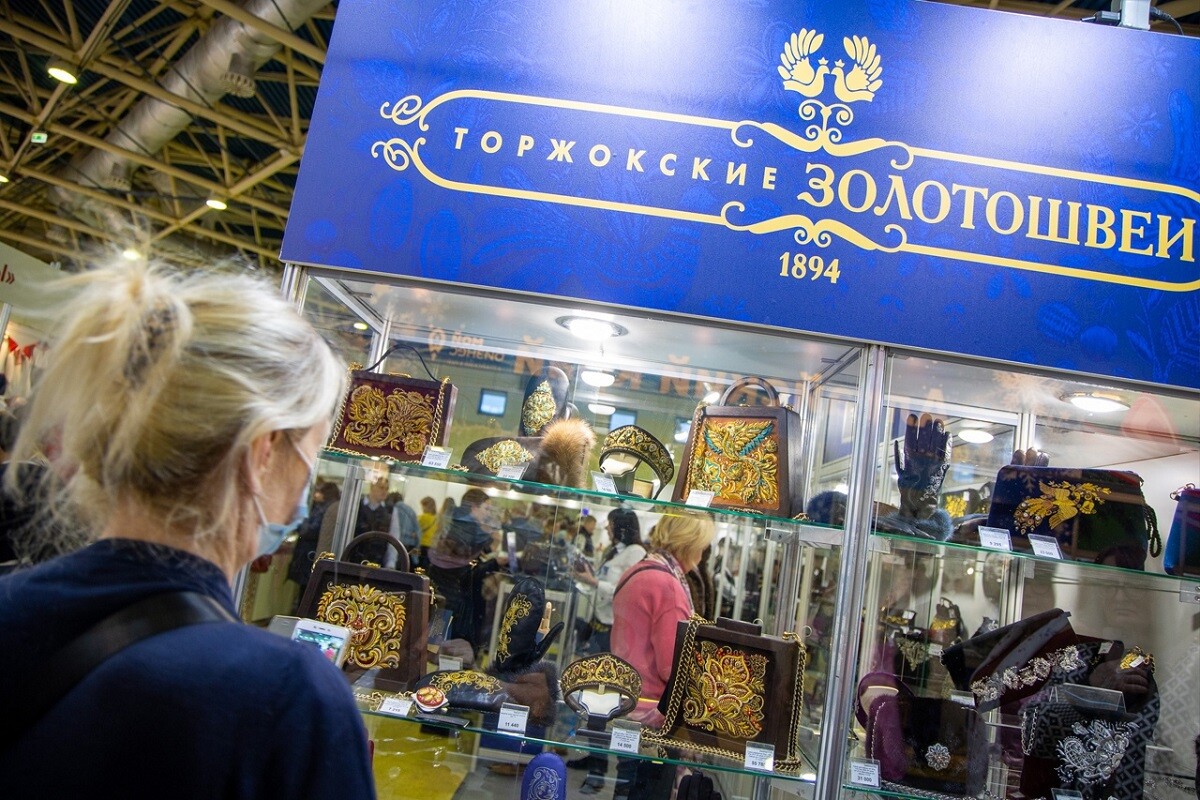 Ростовская финифть, вологодское кружево, палехская и федоскинская лаковая миниатюра, черненое серебро из Дагестана. И разумеется, торжокские золотошвеи. Стенды регионов России представляют аутентичные изделия местных мастеров, то, чем гордится каждая область. Многие предприниматели, работающие в сфере народных художественных промыслов (НХП), приехали при поддержке своих региональных центров «Мой бизнес». Так решается комплексный вопрос – развитие экономики через туризм, привлечение в малые города России новых людей, которые, заинтересовавшись произведенной в этих местах красотой, соберутся приехать в Торжок, Городец, Мстеру и другие удивительные края, о которых до этого только читали в книгах.