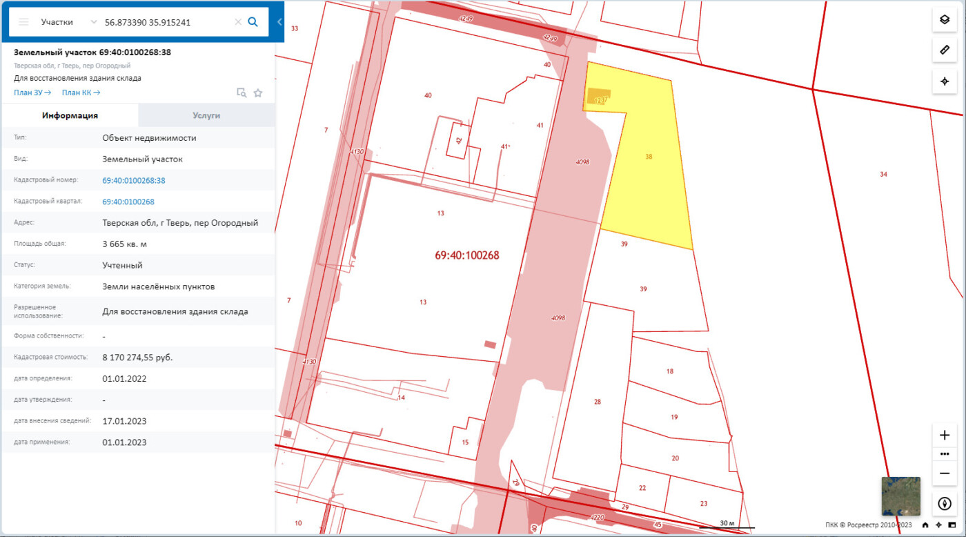 Перефразированная цитата из фильма «ДМБ» идеально описывает сложившуюся ситуацию. Оказывается, участок площадь 3 665 квадратных метров находится в собственности администрации Твери. Он имеет кадастровый номер 69:40:0100268:38. Город в 1990-е годы отдал его в аренду Д.В. Рубчихину под восстановление здания склада площадью 88 квадратных метров. Участок земли не разграничен, поэтому администрация отдала его в аренду целиком.